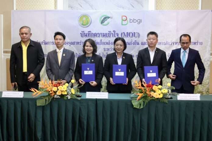 กรุงเทพฯ วันที่ 2 ก.ย.68 เวลา 09.30 นายอรรถกร ศิริลัทธยากร รมว.เกษตรและสหกรณ์ เป็นประธานพิธีลงนามบันทึกความเข้าใจ (MOU) ว่าด้วยการส่งเสริมการเพาะเลี้ยงจุลสาหร่ายเพื่อผลิตเชื้อเพลิงอากาศยานยั่งยืนและผลิตอาหารสัตว์จากกากจุลสาหร่าย ระหว่างกระทรวงเกษตรและสหกรณ์ (กษ.) โดย นายประยูร อินสกุล ปลัด กษ. บริษัท แอดวานซ์ ไบโอคาร์บอน จำกัด โดย นางสาวปิ่นมณี แก้วดวงสี กรรมการผู้มีอำนาจลงนาม และบริษัท บีบีจีไอ จำกัด (มหาชน) โดย นายเดชพนต์ เลิศสุวรรณโรจน์ ประธานเจ้าหน้าที่บริหารและกรรมการผู้จัดการใหญ่ ณ ห้องประชุมกระทรวงเกษตรและสหกรณ์