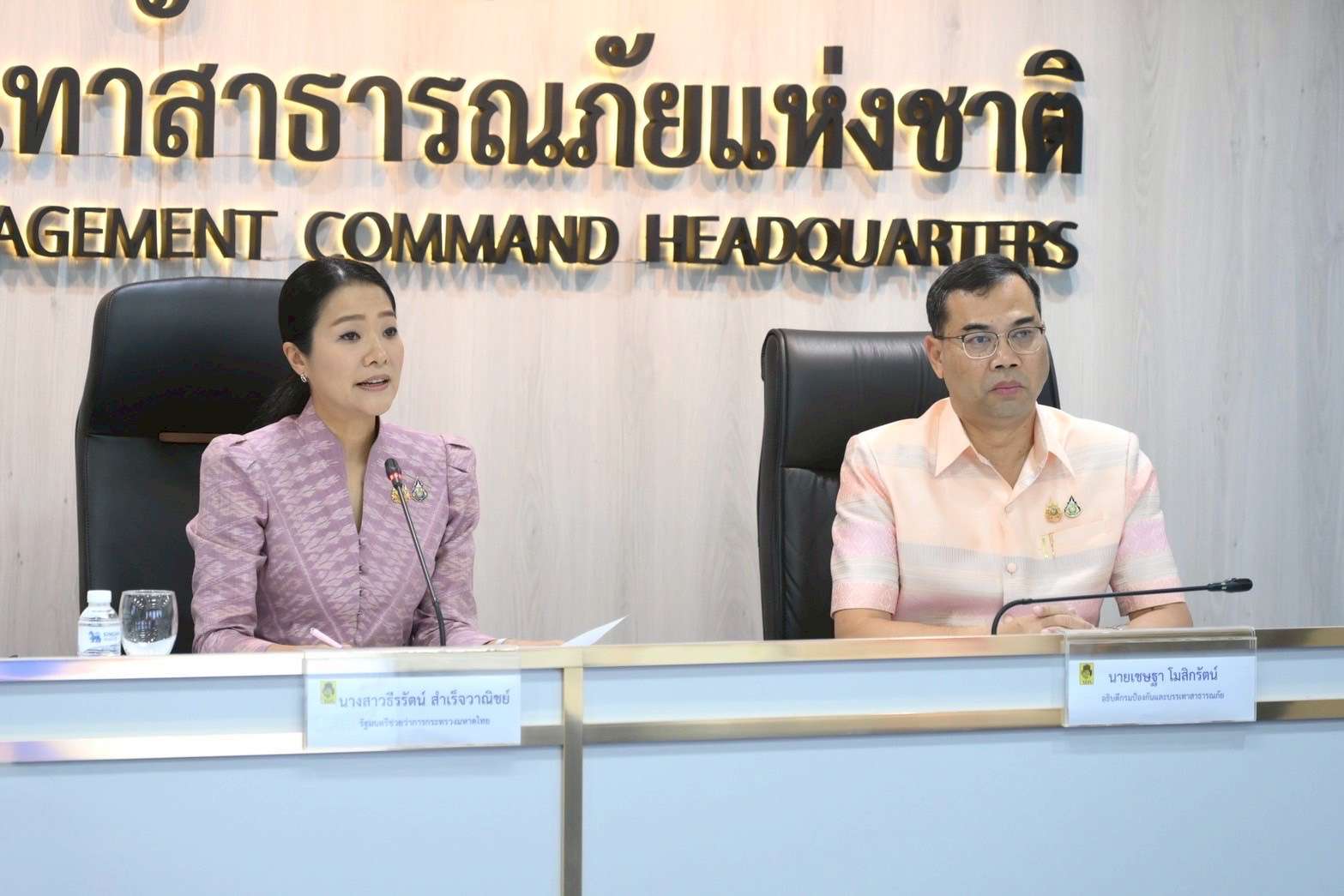 นางสาวธีรรัตน์ กล่าวว่า นายภูมิธรรม เวชยชัย รองนายกรัฐมนตรี และ รมว.มหาดไทย ปฏิบัติหน้าที่แทนนายกรัฐมนตรี ได้มีข้อสั่งการให้ ปภ. ติดตามสถานการณ์ฝนตกหนักต่อเนื่องในหลายพื้นที่อย่างใกล้ชิด ซึ่งก่อให้เกิดความเสียหายและความเดือดร้อนแก่ประชาชน จึงจัดประชุมเพื่อประเมินสถานการณ์อุทกภัยและดินโคลนถล่ม ตลอดจนการสนับสนุนการช่วยเหลือในพื้นที่ให้เป็นไปด้วยความรวดเร็วและทันต่อสถานการณ์ ทั้งนี้ หากจังหวัดใดต้องการความช่วยเหลือให้รีบแจ้งมายังส่วนกลางโดยด่วน และหากพบพื้นที่เสี่ยงสูงที่ต้องประกาศเตือนภัยระดับสูงสุด ให้ประสานมายัง ปภ. เพื่อสามารถส่งสัญญาณเตือนภัยแก่ประชาชนได้อย่างทันท่วงที