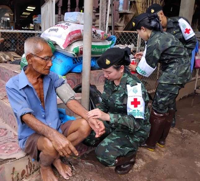 กองทัพบก โดยศูนย์บรรเทาสาธารณภัยกองทัพบก และหน่วยทหารในพื้นที่เร่งให้ความช่วยเหลือประชาชนที่ได้รับผลกระทบอย่างเร่งด่วนทั่วประเทศ โดยเฉพาะในพื้นที่ภาคเหนือที่ปัจจุบันได้รับผลกระทบอย่างหนัก ในการเข้าปฏิบัติภารกิจช่วยเหลือผู้ประสบภัย อาทิ ศูนย์บรรเทาสาธารณภัยกองทัพภาคที่ 3, กองพลทหารม้าที่ 1 โดย กองพันทหารม้าที่ 28 และกองพันทหารช่างที่ 8, มณฑลทหารบกที่ 33, มณฑลทหารบกที่ 35, มณฑลทหารบกที่ 36, มณฑลทหารบกที่ 39, กองกำลังนเรศวร, กรมทหารช่างที่ 3 และกองพัน ส่งกำลังและบริการที่ 23 กองบัญชาการช่วยรบที่ 3 จัดตั้งโรงครัวพระราชทานเพื่อประกอบอาหารปรุงสุกให้กับประชาชนผู้ประสบภัย ในพื้นที่ตำบลแม่ศึก อำเภอแม่แจ่ม จังหวัดเชียงใหม่, มอบอาหารปรุงสุกและจัดชุดแพทย์เคลื่อนที่เข้าตรวจสุขภาพ รวมถึงให้คำแนะนำการป้องกันโรคที่มากับน้ำ ในพื้นที่ตำบลบ่อทอง อำเภอทองแสนขัน จังหวัดอุตรดิตถ์, เข้าทำความสะอาดและฟื้นฟูพื้นที่ประสบภัย ในพื้นที่ตำบลผาบ่อง อำเภอเมือง จังหวัดแม่ฮ่องสอน, บรรจุกระสอบทรายทำแนวป้องกันอุทกภัย ขนย้ายสิ่งของขึ้นที่สูง อพยพประชาชนออกจากพื้นที่เสี่ยง พร้อมทั้งนำกำลังพลและเครื่องมือช่างเข้าฟื้นฟูพื้นที่หลังน้ำลด โดยร่วมกับส่วนราชการในพื้นที่ทำความสะอาดตะกอนดินโคลน เติมน้ำสะอาดเพื่อการอุปโภค – บริโภค และกำจัดเศษวัสดุที่อุดตันท่อระบายน้ำ ในพื้นที่อำเภอหล่มเก่า, อำเภอหล่มสัก และอำเภอเมือง จังหวัดเพชรบูรณ์, บรรจุกระสอบทรายทำแนวป้องกันอุทกภัย ในพื้นที่ตำบลวังทอง อำเภอวังทอง จังหวัดพิษณุโลก ขณะเดียวกันกำลังพลจิตอาสา พร้อมด้วยรถยนต์บรรทุกขนาดใหญ่ เข้าให้บริการรับ – ส่งประชาชนและนักเรียน ที่เส้นทางสัญจรถูกตัดขาด ในชุมชนตำบลชัยนาม อำเภอวังทอง จังหวัดพิษณุโลก โดยได้ให้บริการประชาชนไปแล้วกว่า 30 เที่ยว รวม 194 คน และได้ร่วมกับองค์การบริหารส่วนตำบลชัยนาม มอบถุงยังชีพให้แก่ประชาชนและผู้ป่วยติดเตียง รวม 162 ครัวเรือน, เข้าช่วยเหลือประชาชนโดยการเก็บเครื่องสูบน้ำออกจากพื้นที่อุทกภัย ทำแนวกั้นน้ำริมตลิ่งแม่น้ำยมที่มีดินสไลด์ และบรรจุกระสอบทรายเพื่อเสริมแนวป้องกันน้ำ ในพื้นที่อำเภอสวรรคโลก และอำเภอเมือง จังหวัดสุโขทัย นอกจากนี้ ศูนย์บรรเทาสาธารณภัยหน่วยบัญชาการสงครามพิเศษ โดย กองพันรบพิเศษที่ 1 กรมรบพิเศษที่ 5 ยังปฏิบัติภารกิจค้นหาและกู้ภัยผู้สูญหายจากภัยพิบัติดินถล่ม ในพื้นที่ตำบลแม่ศึก อำเภอแม่แจ่ม จังหวัดเชียงใหม่