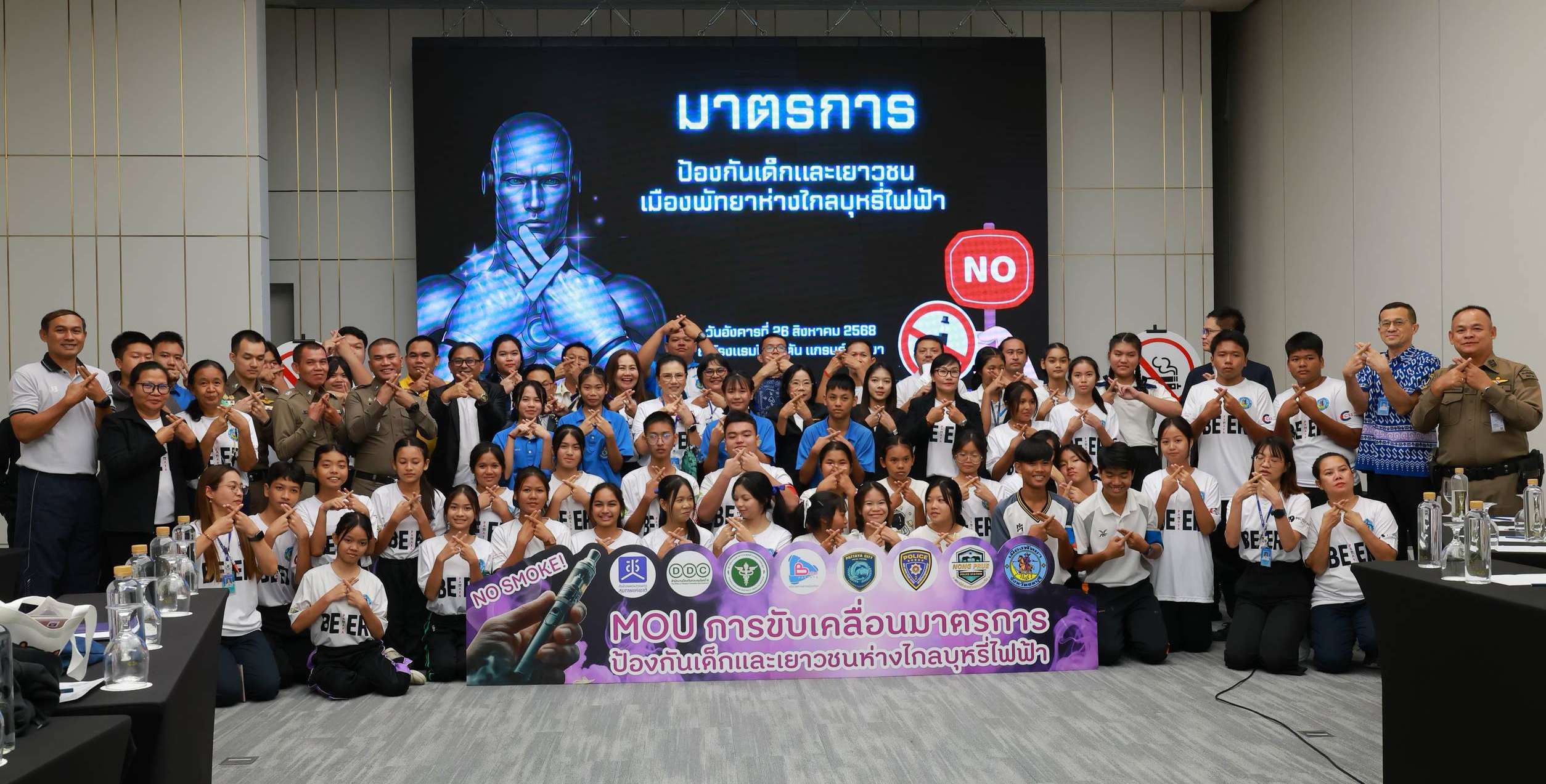 นายอนุศักดิ์ เปรมเปราะ รองผู้อำนวยการสถานศึกษา (โรงเรียนเมืองพัทยา 3) ในฐานะกลุ่มผู้บริหารสถานศึกษา กล่าวว่า ย้อนกลับไปเมื่อเดือนที่ผ่านมาได้มีการลงนามบันทึกข้อตกลงความร่วมมือ (MOU) ระหว่าง สช. เมืองพัทยา,โรงเรียนในสังกัดเมืองพัทยา ตลอดจนภาคีเครือข่ายที่เกี่ยวข้องทั้งหมด 21 หน่วยงาน เพื่อร่วมกันขับเคลื่อนมาตรการป้องกันเด็กและเยาวชนห่างไกลบุหรี่ไฟฟ้า ซึ่งถือเป็นภัยเสี่ยงอย่างมากที่เด็กและเยาวชนในยุคปัจจุบันกำลังเผชิญอยู่