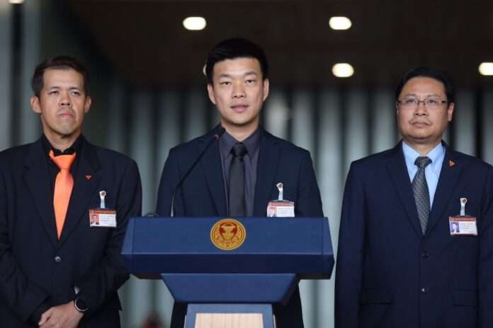 นายณัฐพงษ์ เรืองปัญญาวุฒิ หัวหน้าพรรคประชาชน (ปชน.) พร้อมด้วย นายปกรณ์วุฒิ อุดมพิพัฒน์สกุล ประธานคณะกรรมการประสานงานพรรคร่วมฝ่ายค้าน และสมาชิกพรรค แถลงถึงข้อตกลงร่วมระหว่างพรรคประชาชนกับพรรคภูมิใจไทย กรณีการเลือกบุคคลดำรงตำแหน่งนายกรัฐมนตรี ระบุว่า
