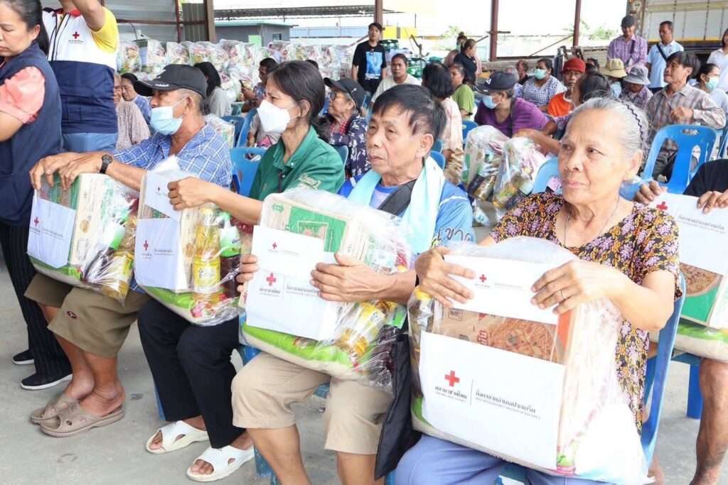 กิ่งกาชาดอำเภอปากเกร็ด มอบถุงยังชีพ พร้อมเงินสด ในพื้นที่อำเภอปากเกร็ด 7 ตำบล รวม 480 ราย