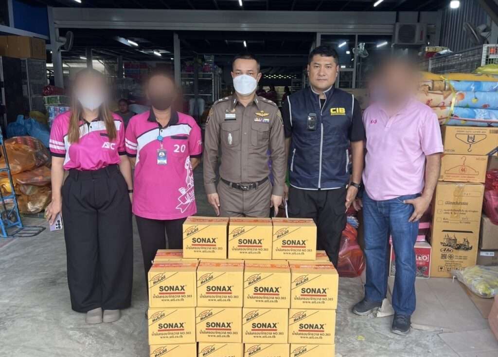 ต่อมาเจ้าพนักงานตำรวจจึงได้นำหมายค้นศาลจังหวัดสมุทรสงคราม เข้าตรวจค้นสถานที่ตรวจค้นดังกล่าว จากการตรวจค้นพบ สเปรย์น้ำมันเอนกประสงค์ ที่ปลอมเครื่องหมายการค้า Sonax รวมจำนวน 332กระป๋อง มูลค่าความเสียหาย 100,000 บาท จากการตรวจสอบเป็นสินค้าที่ปลอมเครื่องหมายการค้า จึงได้ร่วมกันตรวจยึดสินค้าดังกล่าว และนำของกลางส่งพนักงานสอบสวน กก.1 บก.ปอศ.เพื่อดำเนินคดีตามกฎหมายต่อไป