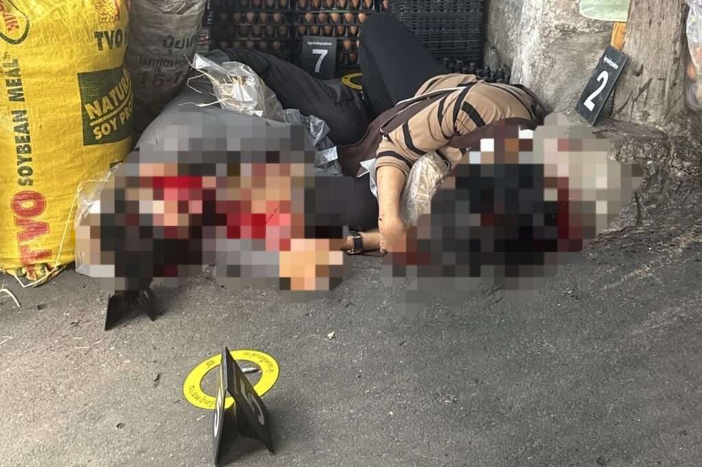 พนักงานสอบสวนเวร ได้รับแจ้งเหตุ 241 จึงได้เดินทางไปตรวจสอบ พบผู้ถูกอาวุธปืนเสียชีวิต 2 ราย (ผู้เสียหาย) ที่ร้านขายไข่ไก่ จากการตรวจสอบ พบศพผู้เสียชีวิตอีก 1 ราย (ผู้ต้องหาพร้อมอาวุธปืน) อยู่ในวิกเพชรบุรีราม่า ห่างจากจุดแรกประมาณ 10 เมตร
