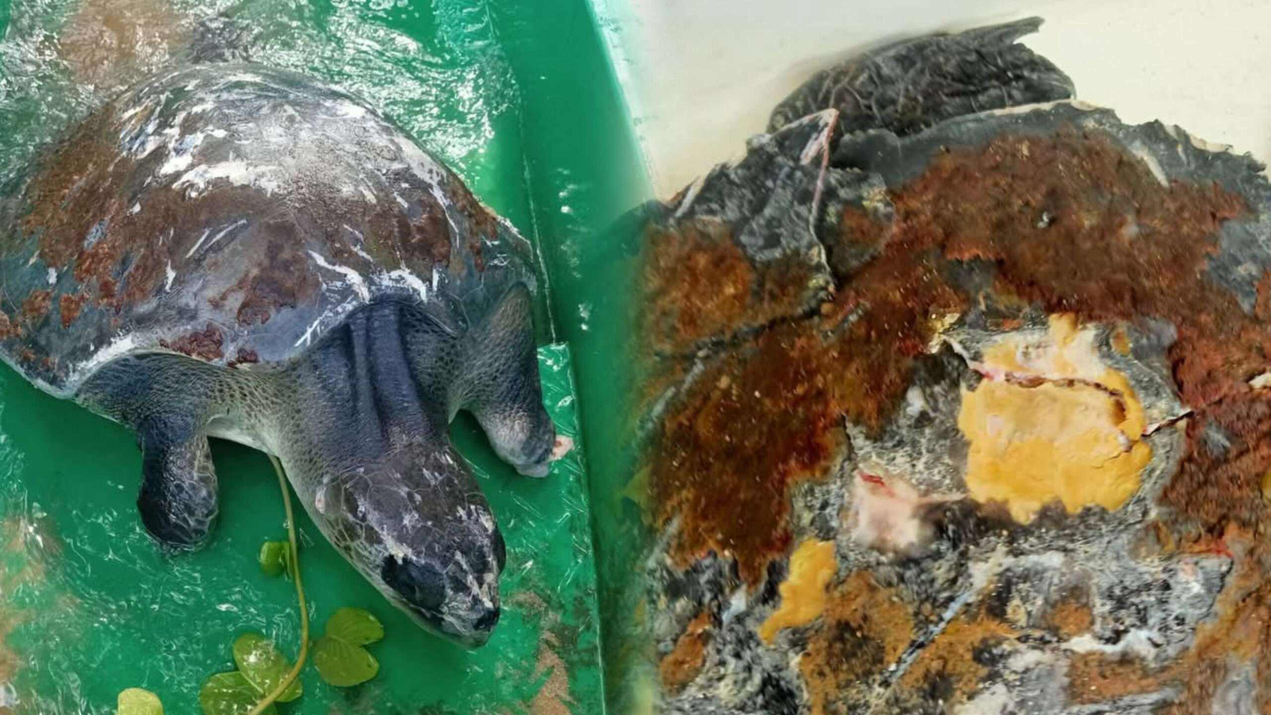เจ็บเมื่อวันที่ 6 กันยายน 2568 อุทยานแห่งชาติสิรินาถ จังหวัดภูเก็ต พบเต่าหญ้า Olive ridley sea turtle : Lepidochelys olivacea เพศเมีย ขนาดใหญ่ ความยาวกระดอง 68 เซนติเมตร สภาพบาดเจ็บสาหัส บริเวณหาดในทอน โดยมีบาดแผลฉกรรจ์ที่พายหน้าทั้งสองข้างขาด กระดองมีรอยแตกร้าว และใต้กระดองมีรอยถลอก สันนิษฐานว่าเกิดจากการถูกเศษอวนและขยะทะเลพันรัดจนได้รับบาดเจ็บ