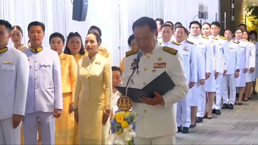 เมื่อเวลา 11.33 น. วันที่ 7 กันยายน 2568 ว่าที่ร้อยตำรวจตรีอาพัทธ์ สุขะนันท์ เลขาธิการสภาผู้แทนราษฎร อัญเชิญพระบรมราชโองการโปรดเกล้าโปรดกระหม่อม แต่งตั้ง นายอนุทิน ชาญวีรกูล เป็นนายกรัฐมนตรีคนที่ 32 เดินทางมาถึงที่ทำการพรรคภูมิใจไทย ถ.พหลโยธิน เขตจตุจักร กทม. โดยได้อัญเชิญไปยังสถานที่ในการรับสนองพระบรมราชโองการฯ