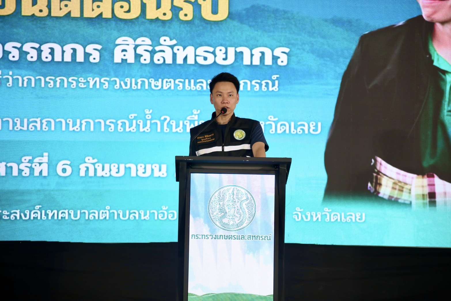 จังหวัดเลย, วันที่ 6 ก.ย. – นายอรรถกร ศิริลัทธยากร รมว.เกษตรและสหกรณ์ เดินทางไปตรวจติดตามสถานการณ์ และตรวจความคืบหน้าโครงการชลประทาน รวมทั้งรับฟังรายงานสถานการณ์อุทกภัยและการช่วยเหลือ โดยได้พบปะเกษตรกร รับฟังปัญหาและข้อเสนอแนะ รวมถึงมอบปัจจัยการผลิตด้านการเกษตร ณ เทศบาลตำบลนาอ้อ อ.เมือง จ.เลย โดยนายอรรถกร กล่าวว่า จ.เลย มีแหล่งน้ำที่สำคัญ ได้แก่ แม่น้ำเลย แม่น้ำพอง และห้วยน้ำหมาน ฤดูฝนมีปริมาณน้ำมาก แต่กักเก็บน้ำไว้ใช้ในปริมาณที่ค่อนข้างน้อย ส่งผลให้ขาดแคลนน้ำในช่วงฤดูแล้ง ก.เกษตรฯ โดยกรมชลประทาน จึงได้เร่งรัดโครงการพัฒนาแหล่งน้ำสำคัญในพื้นที่ อาทิ โครงการประตูระบายน้ำศรีสองรัก อันเนื่องมาจากพระราชดำริ ที่จะเพิ่มพื้นที่ชลประทาน 59,100 ไร่ รวมถึงผลักดันโครงการก่อสร้างฝายยางบ้านท่ามะนาว โดยมีแผนก่อสร้าง 3 ปี ซึ่งเมื่อแล้วเสร็จในปี 2570 จะช่วยเพิ่มศักยภาพการกักเก็บและส่งน้ำ เพื่อการเกษตรฤดูฝน 2,500 ไร่ และฤดูแล้ง 1,700 ไร่ เกษตรกร 827 ครัวเรือนจะได้รับประโยชน์โดยตรง