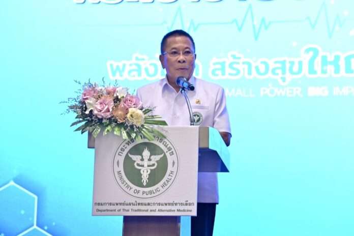 วันนี้ (8 กันยายน 2568) ที่ โรงแรมไมด้า แกรนด์ ทวารวดี จ.นครปฐม นายอนุชา สะสมทรัพย์ รัฐมนตรีช่วยว่าการกระทรวงสาธารณสุข เปิดการประชุมเชิงปฏิบัติการสร้างความรอบรู้สมุนไพรเบื้องต้น สำหรับอาสาสมัครสาธารณสุขประจำหมู่บ้าน (อสม.) พร้อมเปิดตัว “กระเป๋ายาสมุนไพรประจำบ้าน” โดยมี นพ.สมฤกษ์ จึงสมาน อธิบดีกรมการแพทย์แผนไทยและการแพทย์ทางเลือก นพ.ปิยะ ศิริลักษณ์ ผู้ตรวจราชการกระทรวงสาธารณสุข เขตสุขภาพที่ 11 นายฐิติพันธ์ จูจันทร์โชติ ผู้ช่วยเลขานุการรัฐมนตรีว่าการกระทรวงสาธารณสุข นพ.วิโรจน์ รัตนอมรสกุล นายแพทย์สาธารณสุขจังหวัดนครปฐม คณะผู้บริหาร นางนงนุช บุญมาเลิศ รองประธานอาสาสมัครสาธารณสุขประจำหมู่บ้าน อสม. และเจ้าหน้าที่จากโรงพยาบาลส่งเสริมสุขภาพตำบล ของ 7 อำเภอในจังหวัดนครปฐม และบุคลากรทางการแพทย์ที่เกี่ยวข้อง เข้าร่วมกว่า 500 คน
