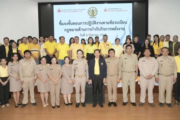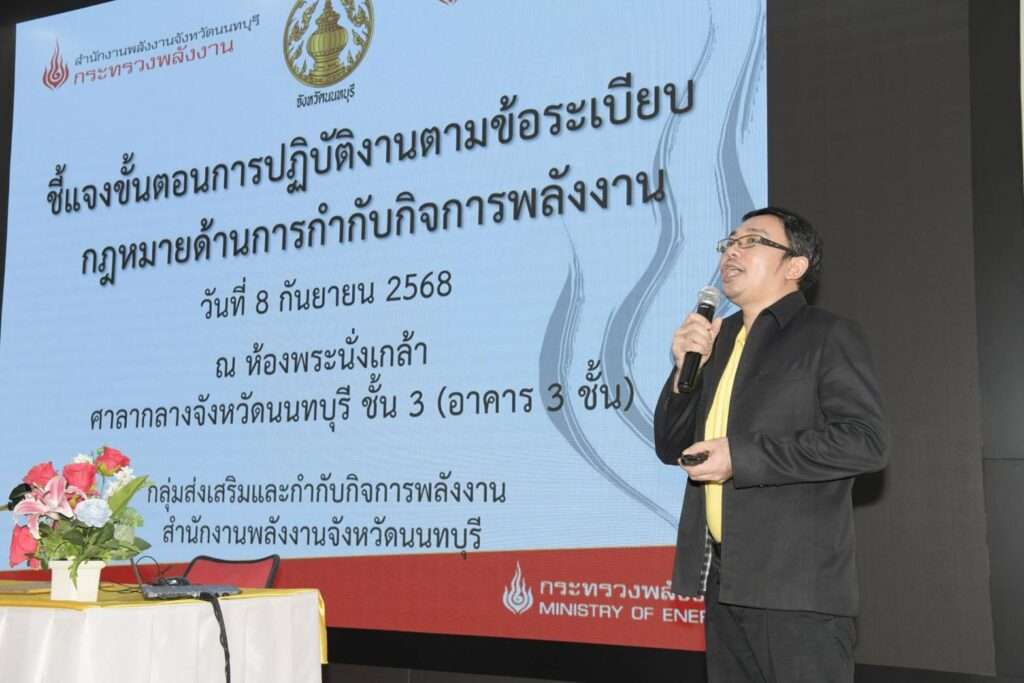 วันที่ 8 กันยายน 2568 เวลา 09.00 น. ณ ห้องพระนั่งเกล้า ศาลากลางจังหวัดนนทบุรี อำเภอเมืองฯ จังหวัดนนทบุรี นายอภิชัย อร่ามศรี รองผู้ว่าราชการจังหวัดนทบุรี เป็นประธานเปิดการประชุมชี้แจงขั้นตอนการปฏิบัติงานตามข้อระเบียบ กฎหมายด้านการกำกับกิจการพลังงาน
