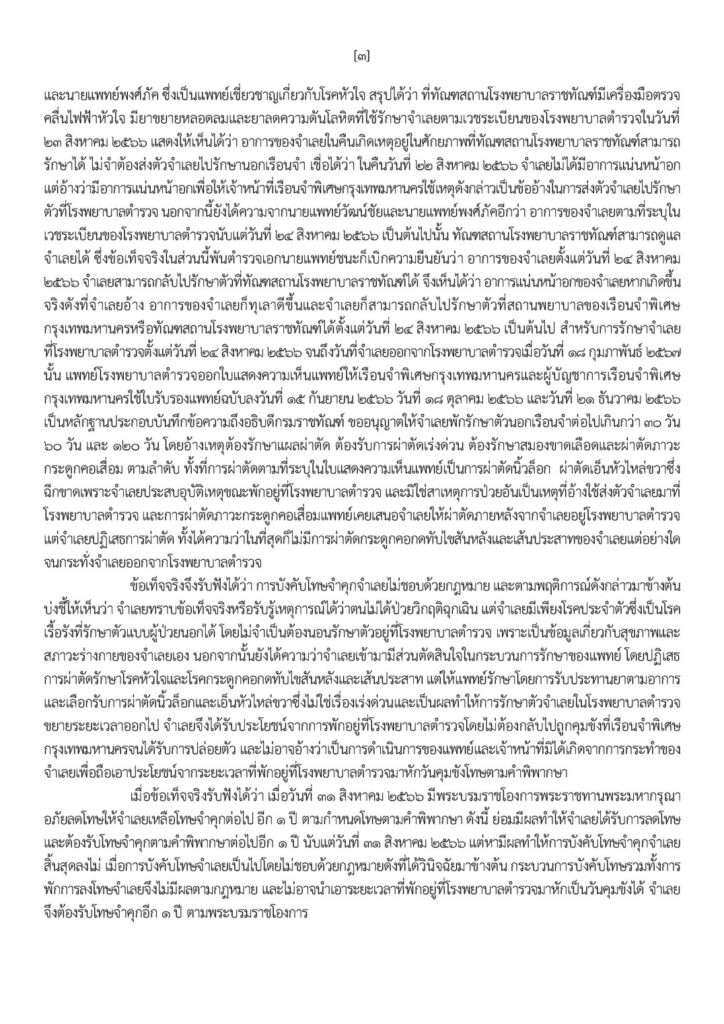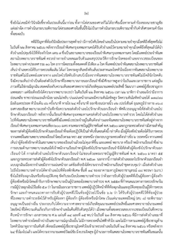 สำหรับคดีนี้เริ่มต้นจาก นายชาญชัย อิสระเสนารักษ์ ยื่นคำร้องเมื่อ 10 ม.ค. 2568 ขอให้ศาลศาลฎีกาฯ พิจารณาประเด็นข้อกฎหมายกรณีเจ้าหน้าที่กรมราชทัณฑ์ หรือ เจ้าหน้าที่เรือนจำพิเศษกรุงเทพฯ ส่งตัวนายทักษิณไปรักษาตัวที่ชั้น 14 โรงพยาบาลตำรวจ อาจขัดต่อบทบัญญัติของประมวลกฎหมายวิธีพิจารณาความอาญา มาตรา 246 ที่กำหนดให้การทุเลาการบังคับโทษจำคุกนั้น เป็นอำนาจของศาล อีกทั้งการนำตัวนายทักษิณไปพักรักษาตัวชั้นที่ 14 ซึ่งเป็นห้องที่แยกต่างหากจากผู้ป่วยทั่วไปอาจขัดกับกฎกระทรวงฯ ปี 2563 ข้อ 4 (2) ซึ่งห้ามผู้ต้องขังเข้าอยู่ในห้องพักพิเศษแยกจากผู้ป่วยทั่วไป