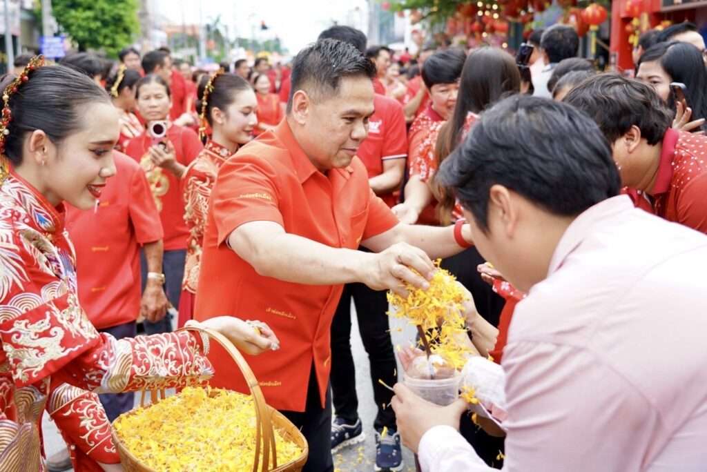 นายวราวุธได้มอบเกียรติบัตรพร้อมของที่ระลึกให้แก่ผู้สนับสนุนการจัดงาน 50 หน่วยงาน จากนั้นทำพิธีปล่อยขบวนอัญเชิญเจ้าพ่อหลักเมืองจากศาลเจ้าพ่อหลักเมืองไปตามเส้นทางที่กำหนด ก่อนจะไปสิ้นสุดขบวนที่บริเวณสมาคมตง ฮั้ว ฮ่วย ก้วง จากนั้นขบวนเกี้ยวอัญเชิญเจ้าพ่อหลักเมืองและรถประกอบขบวนเดินทางกลับไปยังศาลเจ้าพ่อหลักเมืองสุพรรณบุรี เพื่ออัญเชิญเจ้าพ่อหลักเมือง เข้าสู่ที่ประทับการป่วงเซียง ถวายสักการะเจ้าพ่อหลักเมืองโดยคณะตั่วล่อโก้ว