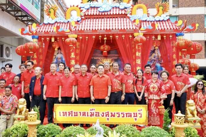 อย่างไรก็ตามตั้งแต่ช่วงเวลา 06.00 น. ได้มีพิธีอัญเชิญเจ้าพ่อหลักเมืองสุพรรณบุรี โดยมีนายพิริยะ เป็นประธาน พร้อมด้วยคณะกรรมการศาลเจ้าพ่อหลักเมือง ส่วนราชการ เตรียมพร้อมขบวนแห่ทุกขบวน โดยมีพระสงฆ์นิกายจีน ทำพิธีสวดเจริญพระพุทธมนต์ ปลุกเสกดอกดาวเรือง ทำพิธีไหว้ศาลเจ้าพ่อหลักเมือง เอ็งกอบู๊ มังกรทอง และตั่วล่อโก้ว แสดงถวายสักการะเพื่ออัญเชิญเจ้าพ่อหลักเมือง และคณะกรรมการศาลเจ้าพ่อหลักเมือง อัญเชิญกระถางธูปทั้งหมด 27 กระถางขึ้นรถแห่