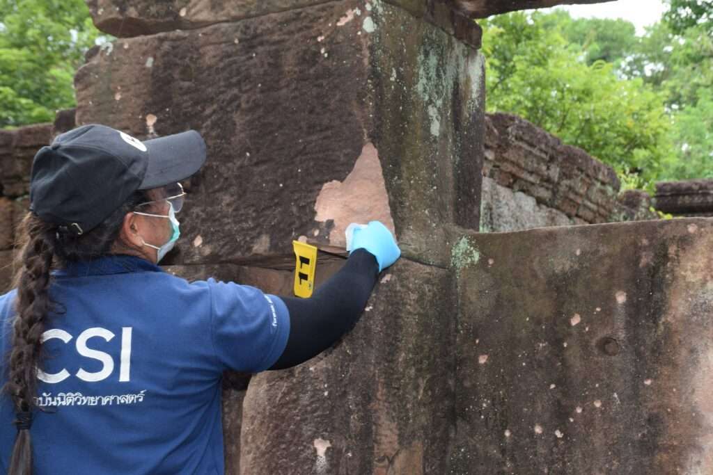 นอกจากนี้ จากการที่กองทัพบกได้ร่วมกับสถาบันนิติวิทยาศาสตร์ กระทรวงยุติธรรม ลงพื้นที่รวบรวมหลักฐานความเสียหายในบริเวณปราสาทตาเมือนธม ซึ่งเป็นโบราณสถานที่สำคัญของ จ.สุรินทร์ พบว่าผนังและกำแพงของปราสาทได้รับความเสียหายจากกระสุนปืน รวมทั้งพบลูกระเบิดที่รอการเก็บกู้ และในส่วนของพื้นที่ปราสาทตาควาย อ.พนมดงรัก จ.สุรินทร์ ยังได้ปรากฏหลักฐานจากภาพถ่ายและวิดีโอว่าพบทหารกัมพูชาเข้าไปตั้งฐานที่มั่นเพื่อใช้ปฏิบัติการทางทหารในบริเวณปราสาทด้วย ซึ่งทั้งสองกรณีนี้ ถือว่าเป็นการละเมิดต่อกฎหมายระหว่างประเทศ ทั้งการโจมตีต่อโบราณสถานที่สำคัญ และการปรับปรุงฐานที่มั่นทางทหารหลังข้อตกลงหยุดยิง