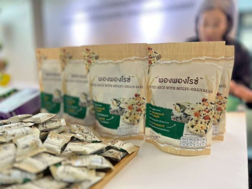 ทั้งนี้ กลุ่มวิสาหกิจชุมชนทำนาห้วยตาดข่า นับเป็นกลุ่มที่มีการรวมตัวอย่างเข้มแข็งและเกิดการเรียนรู้ร่วมกันระหว่างเกษตรกรรุ่นเดิมและรุ่นใหม่ที่ผสานประสบการณ์และองค์ความรู้สมัยใหม่ ทำให้เกิดการยกระดับคุณภาพผลผลิต และสร้างความมั่นคงทางรายได้อย่างยั่งยืน ซึ่งไม่เพียงแต่การผลิตข้าวคุณภาพแล้ว แต่กลุ่มฯ ยังต่อยอดแปรรูปเป็นผลิตภัณฑ์ข้าวพองธัญพืชอบกรอบจากจมูกข้าวหอมมะลิ “พองพองไรซ์” (Puffed Rice with Multi-Grain Bars) ที่ช่วยสร้างรายได้ และเพิ่มมูลค่าให้กับข้าวไทย