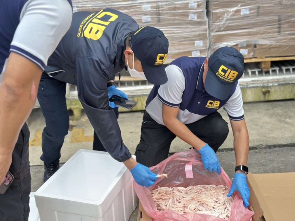ตำรวจสอบสวนกลาง (CIB) ผนึกกำลังกรมปศุสัตว์–ศุลกากร ยึดขาไก่แช่แข็งลักลอบนำเข้า เสี่ยงปนเปื้อน-เชื้อโรคอันตราย กว่า 230 ตันความเสียหายกว่า 20 ล้านบาท