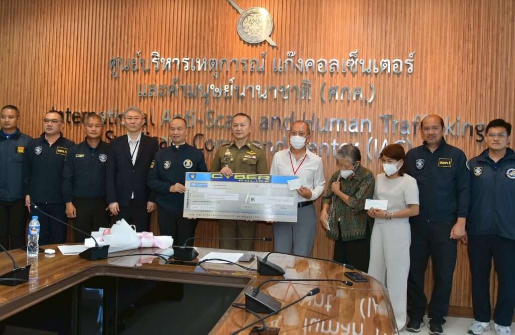 วันนี้ พล.ต.อ.ธัชชัยฯ พร้อมเจ้าหน้าที่ตำรวจชุดติดตามคดี ได้ร่วมกันนำเงินจำนวน 1,997,569.02 บาท คืนให้แก่ผู้เสียหายทั้ง 3 ราย ตามโครงการ “MONEY Cash Back” ของ ศูนย์บริหารเหตุการณ์แก๊งคอลเซ็นเตอร์และค้ามนุษย์นานาชาติ (ศกค.) หรือ International Anti-Scam and Human Trafficking Syndicate Command Center (IAC) โดยปฏิบัติการ “MONEY Cash Back” นี้ จะดำเนินการต่อไปอย่างต่อเนื่องเพื่อตัดวงจรแก๊งคอลเซ็นเตอร์ และช่วยเหลือผู้เสียหายที่ถูกหลอกลวงให้โอนเงินให้ได้มากขึ้น