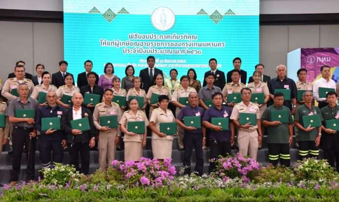 (11 ก.ย. 68) นายชัชชาติ สิทธิพันธุ์ ผู้ว่าราชการกรุงเทพมหานคร เป็นประธานในพิธีมอบประกาศเกียรติคุณให้แก่ผู้ที่เกษียณอายุราชการ ประจำปีงบประมาณ พ.ศ. 2568 (ลูกจ้างประจำกรุงเทพมหานคร) ณ ห้องบางกอก ชั้น B2 อาคารไอราวัตพัฒนา ศาลาว่าการกรุงเทพมหานคร ดินแดง เพื่อเป็นเกียรติแก่ลูกจ้างประจำกรุงเทพมหานครที่ปฏิบัติหน้าที่จนครบเกษียณอายุราชการด้วยความซื่อสัตย์ สุจริต ตั้งใจทุ่มเทแรงกาย แรงใจ และสติปัญญาความสามารถ ช่วยกันพัฒนางานของกรุงเทพมหานครให้เจริญก้าวหน้าตลอดระยะเวลาที่รับราชการ ซึ่งในปีนี้มีลูกจ้างประจำกรุงเทพมหานครเกษียณอายุราชการ จำนวน 1,710 ราย