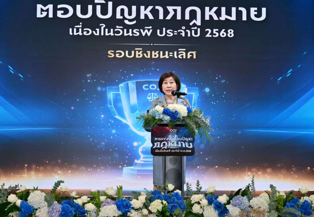 วันนี้ (13 กันยายน 2568) นางชนากานต์ ธีรเวชพลกุล ประธานศาลฎีกา เป็นประธานในพิธีมอบรางวัลการแข่งขันตอบปัญหากฎหมายทั่วประเทศเนื่องในวันรพี ประจำปี พ.ศ. 2568 รอบชิงชนะเลิศชิงถ้วยรางวัลจากประธานศาลฎีกา พร้อมทุนการศึกษา โดยมีนายธีรทัย เจริญวงศ์ เลขาธิการสำนักงานศาลยุติธรรม เป็นผู้กล่าวรายงาน ณ ห้องประชุมใหญ่ห้อง 601 ชั้น 6 อาคารสำนักงานศาลยุติธรรม ถนนรัชดาภิเษก เขตจตุจักร กรุงเทพมหานคร