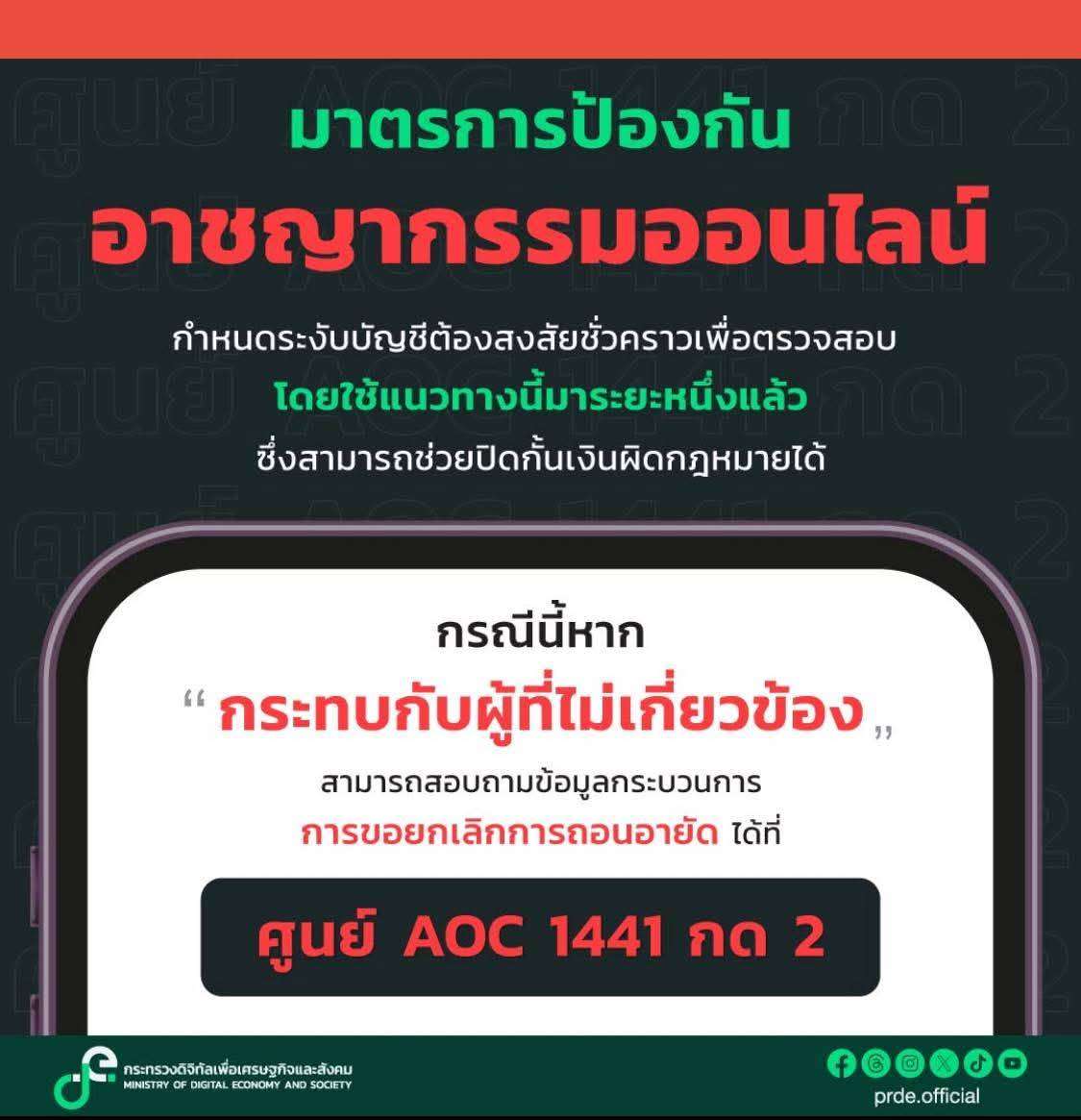 #DE #ดิจิทัลเพื่อเศรษฐกิจและสังคม #กระทรวงดิจิทัลเพื่อเศรษฐกิจและสังคม #มาตรการป้องกันอาชญากรรมออนไลน์