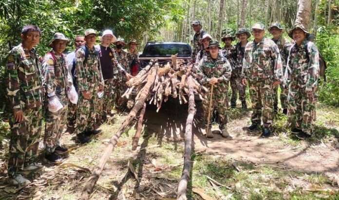 เมื่อวันที่ 13 กันยายน 2568 ว่าที่ร้อยตรีหญิงชดาพรรณ ปันทา หัวหน้าเขตห้ามล่าสัตว์ป่าเขาปะช้าง-แหลมขาม จ.สงขลา เปิดเผยว่า เจ้าหน้าที่ได้ร่วมกันออกตรวจลาดตระเวนเพื่อปราบปรามการกระทำผิดกฎหมายป่าไม้และสัตว์ป่าในพื้นที่รับผิดชอบ หลังจากได้รับแจ้งเบาะแสจากพลเมืองดีว่ามีการลักลอบตัดไม้ในพื้นที่ป่าบ้านสวนรวม-ม่วงถ้ำ หมู่ที่ 3 ตำบลสะกอม อำเภอเทพา จังหวัดสงขลา ซึ่งอยู่ในเขตห้ามล่าสัตว์ป่าเขาปะช้าง-แหลมขาม
