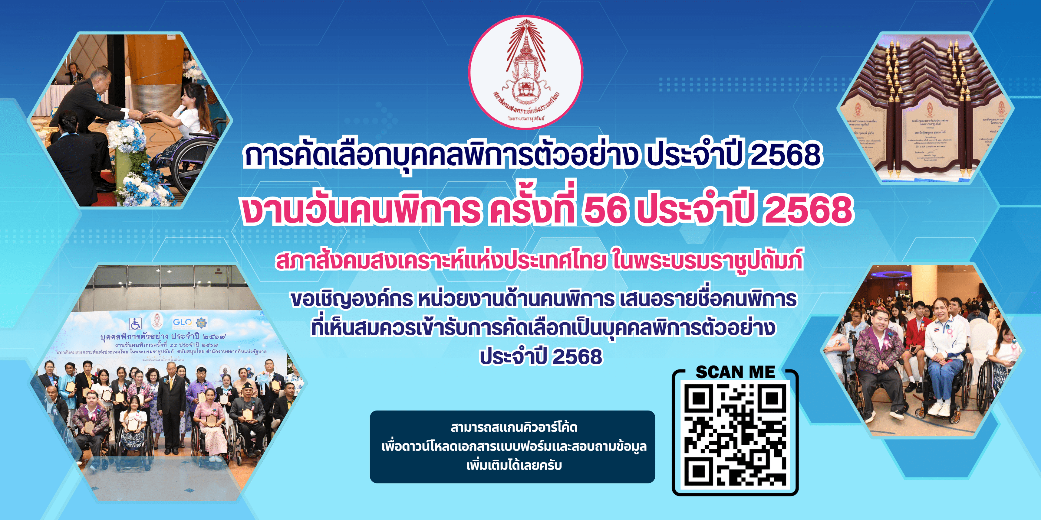 กรุงเทพฯ วันที่ 15 ก.ย. – ร้อยตำรวจโท ดร.มนัส โนนุช ประธานสภาสังคมสงเคราะห์แห่งประเทศไทยในพระบรมราชูปถัมภ์ กล่าวว่า สภาสังคมสงเคราะห์ฯ กำหนดจัด งานวันคนพิการ ครั้งที่ 56 ประจำปี 2568 โดยมีวัตถุประสงค์เพื่อส่งเสริมและเชิดชูเกียรติคนพิการผู้มีความสามารถ ประสบความสำเร็จ และเป็นแบบอย่างที่ดีแก่สังคม โดยจะมีการคัดเลือกบุคคลพิการตัวอย่าง ประจำปี 2568 เพื่อประกาศเกียรติคุณในงานวันคนพิการดังกล่าว จึงขอเชิญชวนหน่วยงาน องค์กร และผู้ที่เกี่ยวข้อง ร่วมเสนอชื่อคนพิการที่เห็นสมควรเข้ารับการคัดเลือก