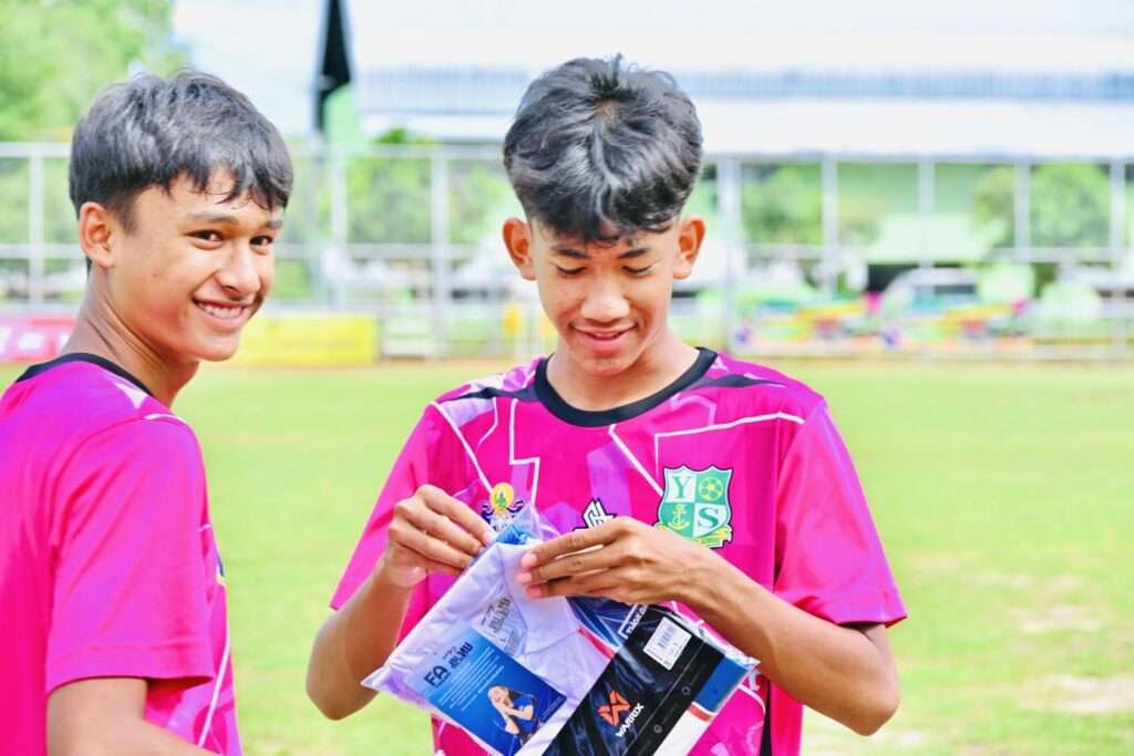 “มาดามแป้ง” นางนวลพรรณ ล่ำซำ ประธานกรรมการสมาคมกีฬาฟุตบอลแห่งประเทศไทยฯ ในพระบรมราชูปถัมภ์ ได้มอบเสื้อทีมชาติไทยเป็นของรางวัลแก่เยาวชนผู้ชนะ เพื่อเป็นขวัญกำลังใจ และเป็นแรงผลักดันให้ก้าวเดินต่อไปบนเส้นทางกีฬา สร้างอนาคตที่สดใสและห่างไกลจากยาเสพติด ซึ่งการมอบเสื้อทีมชาติไทยครั้งนี้ นำทีมโดย นายขจรยศ ศรีทวี นักวิเคราะห์นโยบายและแผนปฏิบัติการ กองส่งเสริมและสนับสนุนงานพัฒนาฝ่ายพลเรือน ศอ.บต. ที่ได้ลงพื้นที่มอบด้วยตนเอง