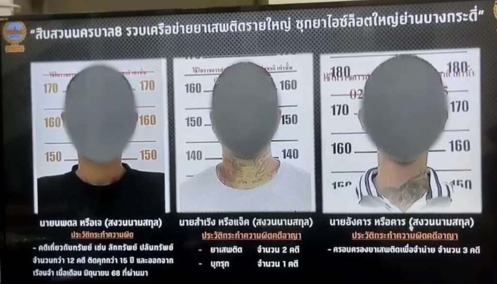 พล.ต.ท.สยาม กล่าวว่า คดีนี้ตำรวจสืบสวนนครบาล 8 ขยายผลมาจากการจับกุมเมื่อเดือนสิงหาคมที่ผ่านมา ได้ทำการเฝ้าดูพฤติกรรมเครือข่ายยาเสพติดรายใหญ่ ย่านพระราม 2 โดยมีการลักลอบนำยาเสพติดเข้ามาเก็บซุกซ่อนในพื้นที่ แล้วกระจายส่งต่อให้กับลูกค้า โดยในวันที่ 14 ก.ย.68 พบว่ากลุ่มดังกล่าวได้ใช้รถยนต์จำนวนหลายคัน ขับจากบริเวณถนนพระราม 2 ไปยังบริเวณริมถนนสาย 32 จังหวัดชัยนาท เชื่อได้ว่าอาจจะไปรับยาเสพติดจำนวนมาก แล้วได้พากันกลับมายังพื้นที่กรุงเทพมหานคร ลักษณะเป็นขบวนลำเลียงยาเสพติด