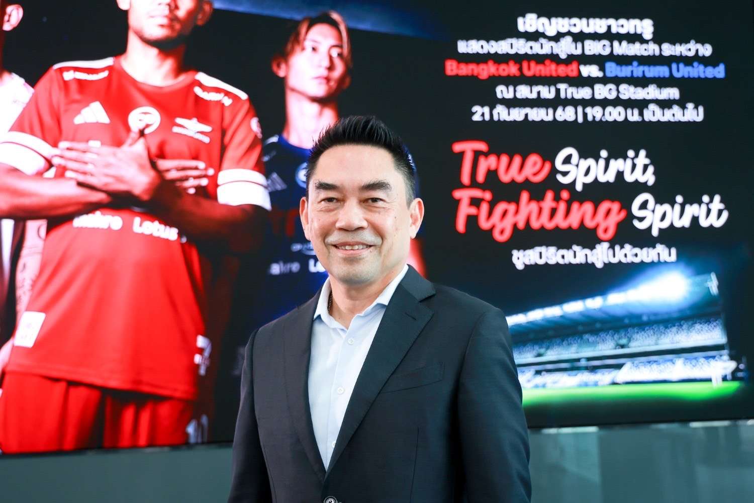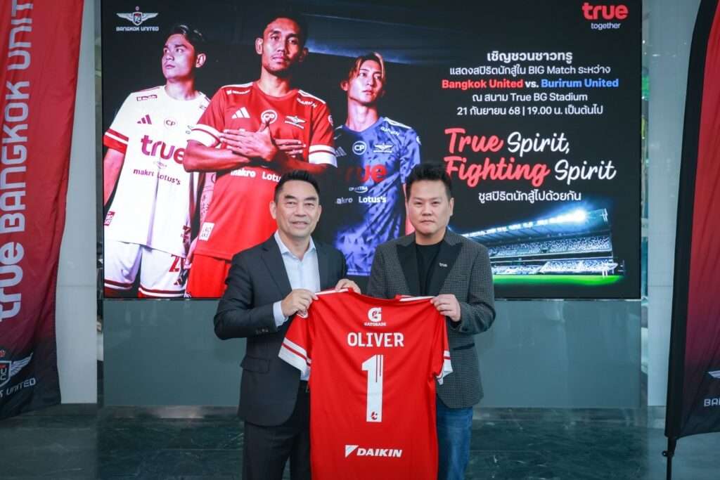 กรุงเทพฯ 17 กันยายน 2568 – บรรยากาศเมื่อเหล่าแข้งเทพแวะมาพบชาวทรู เต็มไปด้วยความคึกคักและอบอุ่น ท่ามกลางแรงสนับสนุนและกองเชียร์แฟนคลับทรู แบงค็อก ยูไนเต็ด ก่อนศึกใหญ่เปิดบ้านดวล บุรีรัมย์ ยูไนเต็ด แชมป์เก่าไทยลีก ณ สนามเหย้าแห่งใหม่ ทรู บีจี สเตเดี้ยม จังหวัดปทุมธานี ในวันอาทิตย์ที่ 21 กันยายนนี้ พร้อมทั้งมีการมอบเสื้อแข่งขันคอลเลกชันใหม่ประจำฤดูกาล 2025/26 เพื่อเป็นสัญลักษณ์แห่งพลังใจร่วมสู้ไปกับทีม โดย นายขจร เจียรวนนท์ ประธานสโมสรทรู แบงค็อก ยูไนเต็ด ประธานในพิธี มอบเสื้อแข่งขันคอลเลกชันใหม่ให้แก่ นายโอลิเวอร์ กิตติพงษ์ วีระเตชะ Chief Brand and Media Officer บมจ.ทรู คอร์ปอเรชั่น
