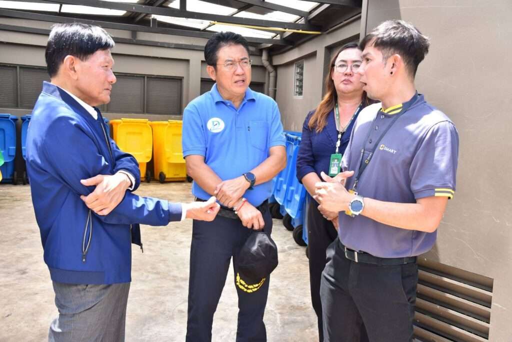 เยี่ยมชมต้นแบบการคัดแยกขยะ หมู่บ้านกลางเมือง วิภาวดี-แจ้งวัฒนะ ถนนวัดเวฬุวานาราม (ตรงข้ามซอยวัดเวฬุวนาราม 21) พื้นที่ 28 ไร่ 3 งาน 75.5 ตารางวา บ้านเรือน 125 หลังคาเรือน ประชากร 150 คน เข้าร่วมโครงการคัดแยกขยะ ตั้งแต่ปี 2567 จำนวน 50 ครัวเรือน วิธีการคัดแยกขยะ โดยจำแนกตามประเภทของขยะ ดังนี้ 1.ขยะอินทรีย์ คัดแยกขยะเศษอาหารโดยให้นำใส่ถุงที่สามารถสังเกตได้ง่าย เพื่อให้เขตฯ จัดเก็บขยะเศษอาหารได้ง่าย ตามโครงการไม่เทรวม 2.ขยะรีไซเคิล คัดแยกขยะรีไซเคิล เพื่อเปลี่ยนเป็นเงิน และนัดบริษัท West By Delivery เข้ามารับซื้อขยะรีไซเคิล 1 ครั้ง ทุก 3 เดือน 3. ขยะทั่วไป คัดแยกขยะทั่วไป นำมาทิ้งที่จุดตั้งถังขยะกลาง บริเวณด้านหน้าของหมู่บ้าน เขตฯ จัดเก็บ 4.ขยะอันตราย คัดแยกขยะอันตราย บริเวณจุดตั้งถังขยะกลาง บริเวณด้านหน้าของหมู่บ้าน ประสานเขตฯ จัดเก็บ สำหรับปริมาณขยะก่อนคัดแยกและหลังคัดแยก ดังนี้ ขยะทั่วไปก่อนคัดแยก 8,600 กิโลกรัม/เดือน หลังคัดแยก 8,409 กิโลกรัม/เดือน ขยะอินทรีย์หลังคัดแยก 190 กิโลกรัม/เดือน ขยะรีไซเคิลหลังคัดแยก 80 กิโลกรัม/เดือน ขยะอันตรายก่อนคัดแยก 1.5 กิโลกรัม/เดือน หลังคัดแยก 1 กิโลกรัม/เดือน ทั้งนี้ รองผู้ว่าราชการกรุงเทพมหานคร ได้ให้คำแนะนำในการคัดแยกขยะประเภทต่าง ๆ เพื่อให้จัดเก็บมีประสิทธิภาพมากยิ่งขึ้น ซึ่งปริมาณขยะที่คัดแยกจะมีผลต่ออัตราค่าธรรมเนียมในการจัดการมูลฝอยฉบับใหม่ โดยจะมีผลบังคับใช้ในเดือนตุลาคม 2568 พร้อมทั้งมอบหมายให้เขตฯ ลงพื้นที่ตามชุมชนต่าง ๆ อย่างต่อเนื่อง เพื่อประชาสัมพันธ์เชิญชวนประชาชนลงทะเบียนผ่านแอปพลิเคชัน BKK WASTE PAY เข้าร่วมโครงการ “บ้านนี้ไม่เทรวม : แยกขยะลดค่าธรรมเนียม”