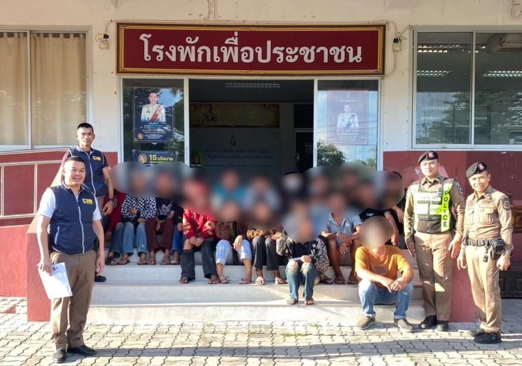 ร่วมกันจับกุมผู้ต้องหา (รวม 18 ราย) ดังนี้ นายทวีศักดิ์ฯ อายุ 60 ปี, ท้าว โหราฯ อายุ 17 ปี พร้อมพวก (ชาย) อายุตั้งแต่ 16-28 ปี รวมจำนวน 9 คนและนาง หม่อมฯ อายุ 18 ปี พร้อมพวก (หญิง) อายุตั้งแต่ 17-20 ปี รวมจำนวน 8 คนซึ่งต้องหาว่ากระทำความผิดฐาน ผู้ต้องหาที่ 1 “รู้ว่าเป็นบุคคลต่างด้าวเข้าเมืองโดยผิดกฎหมาย นำพา ให้การซ่อนเร้น หรือช่วยด้วยประการใดๆ เพื่อให้คนต่างด้าวนั้นพ้นจากการจับกุม”