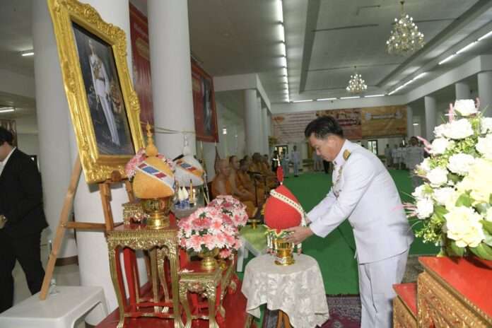 วันที่ 20 กันยายน 2568 เวลา 07.00 น. ณ พระอุโบสถ วัดบัวขวัญ พระอารามหลวง อำเภอเมืองนนทบุรี จังหวัดนนทบุรี นายเกียรติศักดิ์ ตรงศิริ ผู้ว่าราชการจังหวัดนนทบุรี เป็นประธานในพิธีเจริญพระพุทธมนต์ ทำบุญตักบาตรถวายพระราชกุศล และพิธีวางพุ่มดอกไม้ถวายราชสักการะ