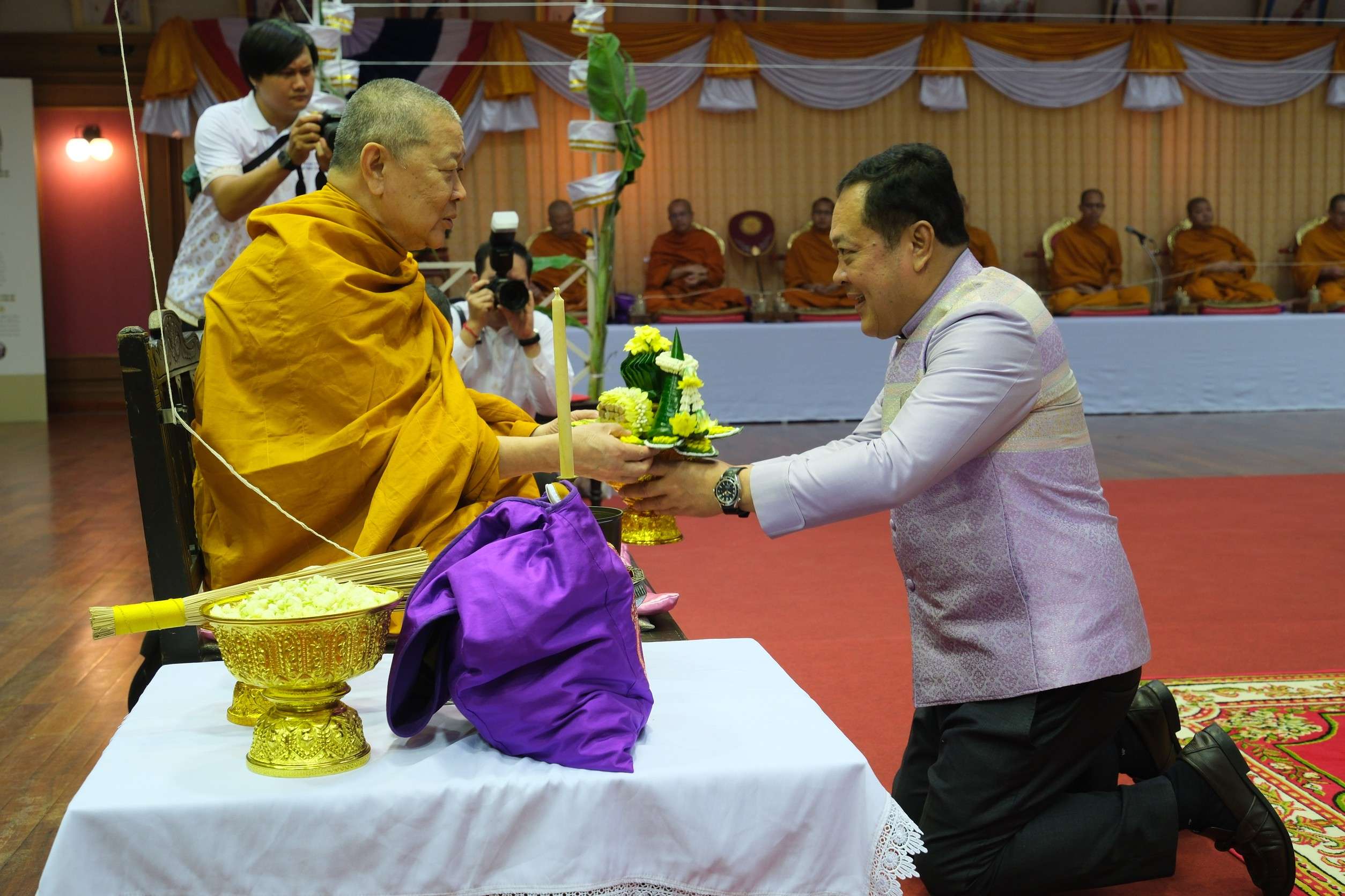 จากนั้น พันตำรวจเอก ทวี เป็นประธานในพิธี จุดเทียนน้ำพระพุทธมนต์ หน้าพระภาวนาจารย์ทุกรูป ก่อนที่เจ้าประคุณสมเด็จพระมหารัชมงคลมุนี เข้านั่งปรก เจิมใบพลู และดับเทียนชัย ก่อนที่เจ้าหน้าที่ นิมนต์พระภาวนาจารย์ดับเทียนชัย เทียนมหามงคล พระมหานาคเจริญคาถาดับเทียนชัย เจ้าประคุณสมเด็จพระมหารัชมงคลมุนี และพระภาวนาจารย์โปรยข้าวตอกดอกไม้ ประพรม น้ำพระพุทธมนต์ในมณฑลพิธี