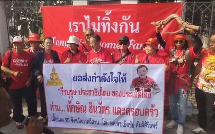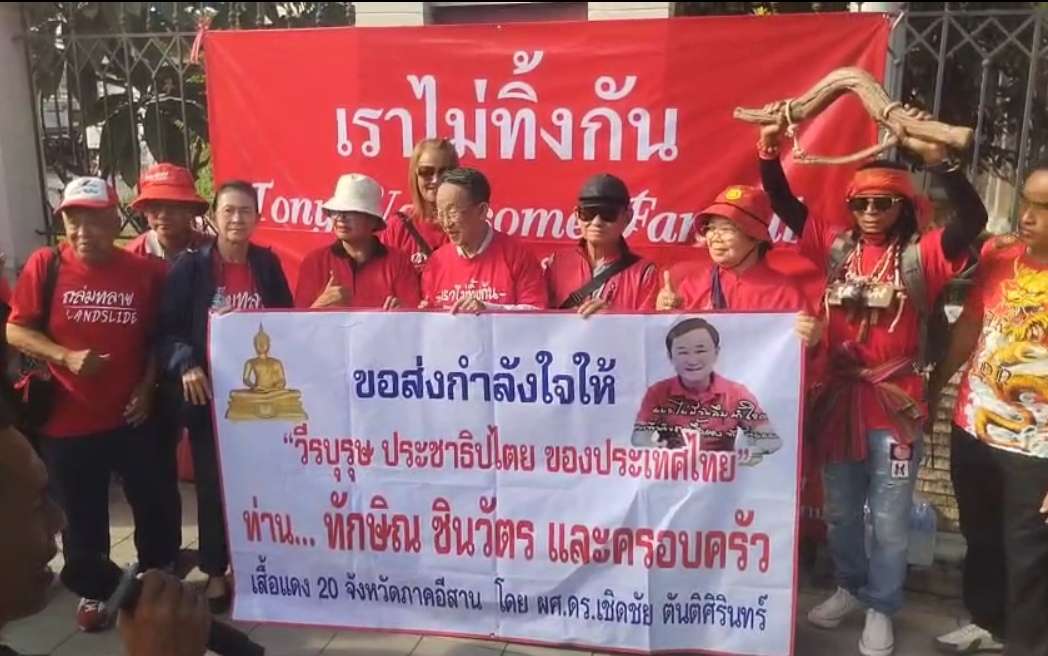 กลุ่มเสื้อแดงอีสาน 20 จังหวัดรวมพลังหน้าเรือนจำ ส่งใจถึง “ทักษิณ” นายกฯ ในดวงใจ ลั่น ! เรายังรักทักษิณ ไม่เลือกพรรคขายชาติ