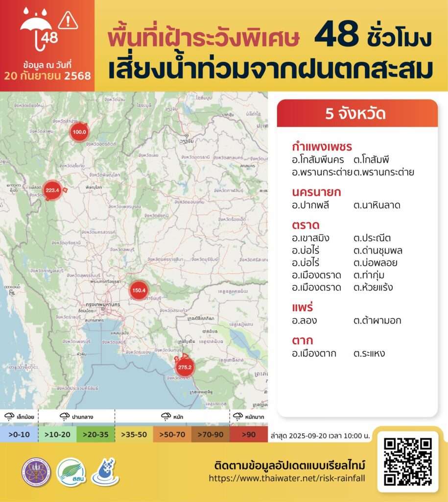 วันนี้ (21 กันยายน 2568) ศูนย์ปฏิบัติการน้ำอัจฉริยะ (SWOC) กรมชลประทาน เปิดเผยว่า จากการติดตามคาดการณ์สภาพอากาศ กรมอุตุนิยมวิทยาระบุว่า ในช่วงวันที่ 21 – 27 กันยายนนี้ ร่องมรสุมจะพาดผ่านภาคเหนือ ภาคกลางตอนบน และภาคตะวันออกเฉียงเหนือ ประกอบกับมรสุมตะวันตกเฉียงใต้ที่มีกำลังแรงขึ้น ส่งผลให้หลายพื้นที่มีฝนเพิ่มขึ้น โดยเฉพาะภาคตะวันออกจะมีฝนตกหนักถึงหนักมาก ขอให้ประชาชนในพื้นที่เสี่ยง เฝ้าระวังฝนตกหนัก – สะสม ซึ่งอาจก่อให้เกิดน้ำท่วมฉับพลันและน้ำป่าไหลหลาก โดยเฉพาะพื้นที่ลาดเชิงเขา ทางน้ำไหลผ่าน และพื้นที่ลุ่ม