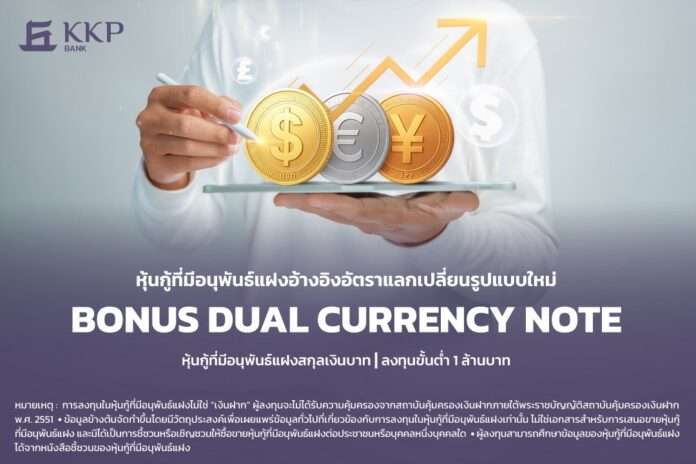 ธนาคารเกียรตินาคินภัทร จำกัด (มหาชน) เปิดตัว Bonus Dual Currency Note (Bonus DCN) หุ้นกู้ที่มีอนุพันธ์แฝง (Structured Note) สกุลเงินบาท ประเภทเพิ่มผลตอบแทน (Yield Enhancement) และไม่มีการคุ้มครองเงินต้น เพื่อตอบโจทย์กลุ่มผู้ลงทุนที่ต้องการเพิ่มโอกาสสร้างผลตอบแทนและบริหารจัดการเงินตราต่างประเทศ ภายใต้ความผันผวนของค่าเงิน โดยจะเสนอขายให้ผู้ลงทุนกลุ่ม High Net Worth และ Ultra High Net Worthตั้งแต่วันที่ 22 กันยายนนี้เป็นต้นไป