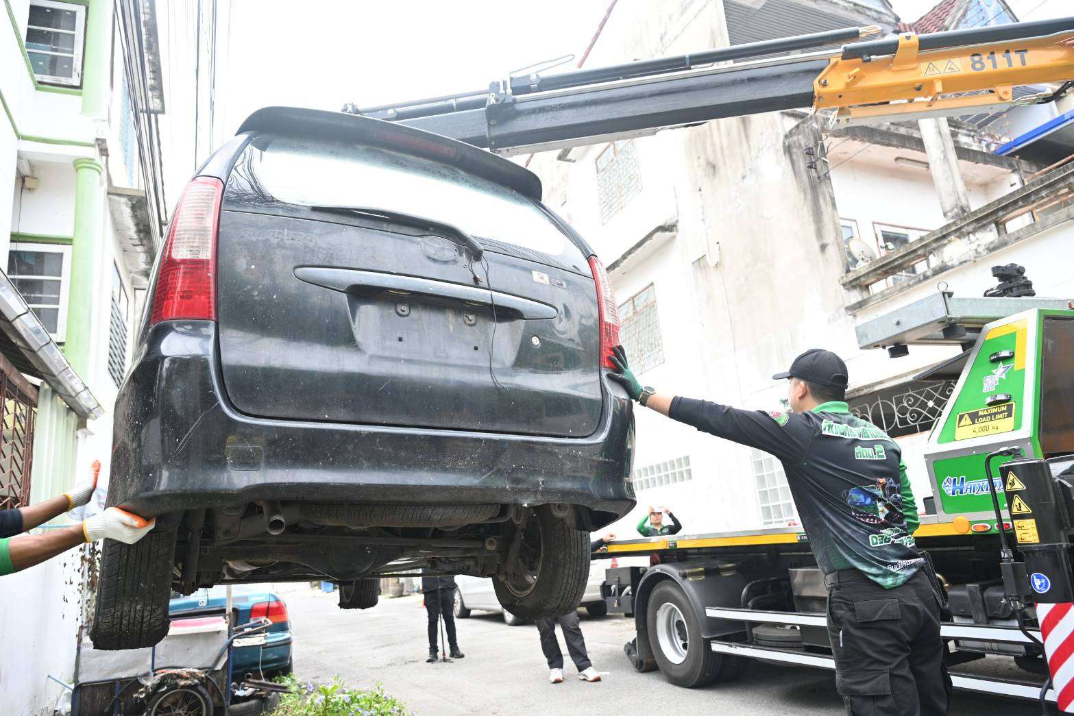 กทม. นำรถสไลด์เคลื่อนย้ายซากรถยนต์ 2 คัน ที่จอดทิ้งกีดขวางถนนซอยบรมราชชนนี 15 และซอยทางเข้าโรงพยาบาลเจ้าพระยา เพิ่มช่องทางจราจร–ความปลอดภัย หากไม่มีผู้แสดงตัวเป็นเจ้าของภายใน 6 เดือน จะขายทอดตลาดตามระเบียบ