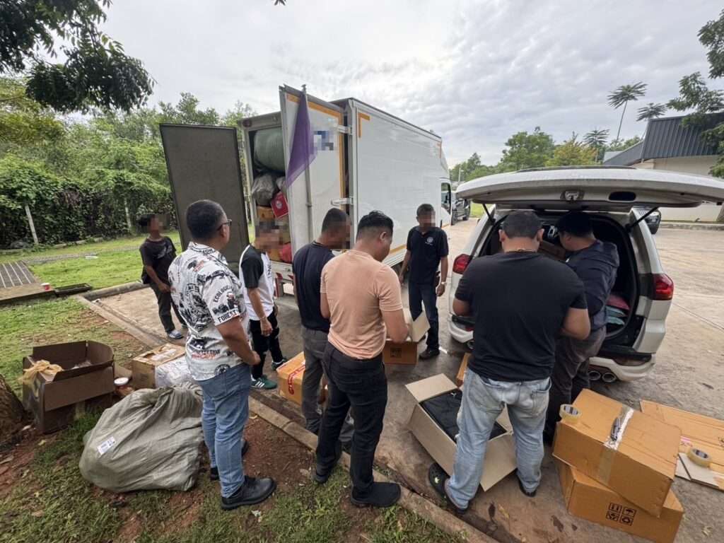 กระทั่งวันที่ 17 กันยายน 2568 เจ้าหน้าที่ได้ตรวจสอบพัสดุต้องสงสัย พบไอซ์ 120 กก.บรรจุในกล่องพัสดุ จำนวน 6 กล่อง ที่ บริษัทขนส่งพัสดุเอกชนในพื้นที่ จ.สงขลา จากนั้น สำนักปราบปรามยาเสพติด สำนักงาน ป.ป.ส. ร่วมกับ สำนักงาน ปปส. ภาค 9, ชปส.ภ.9, ศอ.ปส.ทร. และ ศปก.ทบ. ดำเนินการขออนุมัติครอบครองยาเสพติดภายใต้การควบคุม (CD) เพื่อขยายผลไปยังผู้รับพัสดุดังกล่าว ขณะเจ้าหน้าที่เฝ้าสังเกตการณ์พบเหตุต้องสงสัยเนื่องจากพบว่า ผู้นำส่งพัสดุ (ที่ซุกซ่อนยาเสพติด) ได้นำส่งพัสดุดังกล่าวไปส่งไว้ที่บ้านเช่าในพื้นที่ ต.ปาดังเบซาร์ อ.สะเดา จ.สงขลา (ซึ่งไม่ตรงกับที่อยู่ที่ระบุไว้บนกล่องพัสดุ) เจ้าหน้าที่จึงแสดงตัวเพื่อขอตรวจสอบ พบไอซ์ 120 กก. ในพัสดุ 6 กล่อง จากนั้นขยายผลตรวจค้นภายในบ้านเช่า พบไอซ์เพิ่มเติมอีก 120 กก. บรรจุในกล่องพัสดุ 6 กล่อง รวมของกลางไอซ์ทั้งหมด 240 กก. (ในพัสดุ 12 กล่อง) ผู้นำส่งพัสดุให้การว่า ได้รับคำสั่งให้ไปส่งพัสดุที่ซุกซ่อนยาเสพติดที่บ้านเช่าหลังดังกล่าว จากการตรวจสอบข้อมูล พบว่า ห้วงเดือนกรกฎาคม – กันยายน 2568 เครือข่ายดังกล่าวลักลอบส่งพัสดุมาแล้ว 3 ครั้ง (รวมครั้งที่จับกุม) น้ำหนักรวม 350 กก. ต้นทางพัสดุ อ.บ้านแพง จ.นครพนมปลายทางอ.สะเดา จ.สงขลา คาดว่าเป็นยาเสพติดที่เตรียมส่งต่อไปยังประเทศที่สาม