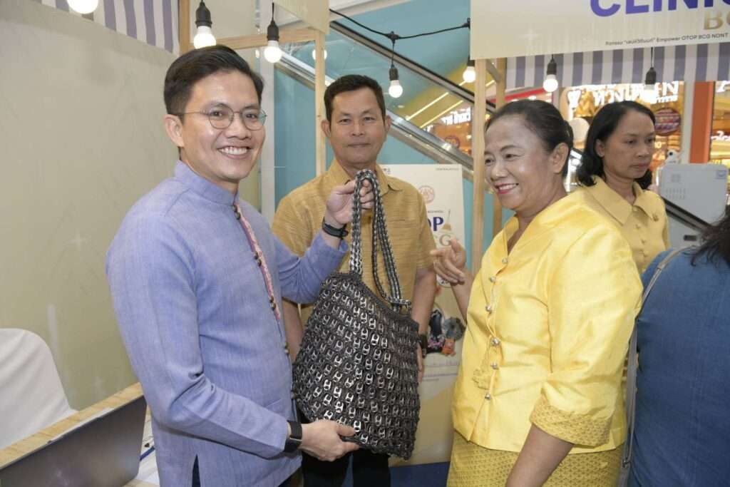 วันนี้ (22 กันยายน 2568) เวลา 15.00 น. ณ ลานโปรโมชั่น ชั้น 1 ศูนย์การค้าโรบินสันไลฟ์สไตล์ ราชพฤกษ์อำเภอปากเกร็ด จังหวัดนนทบุรี นายเกียรติศักดิ์ ตรงศิริ ผู้ว่าราชการจังหวัดนนทบุรี เป็นประธานพิธีเปิด “โครงการสร้างสรรค์ผลิตภัณฑ์ด้วยทุนชุมชน” พร้อมด้วยนางระวีพรรณ แก้วเพียงเพ็ญ รองผู้ว่าราชการจังหวัดนนทบุรี