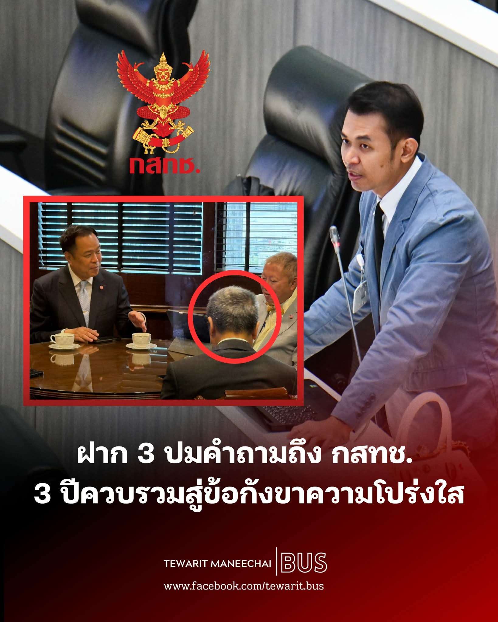 ท้ายที่สุด อยากตั้งคำถามถึงความโปร่งใสในการทำงานของ กสทช. ซึ่งองค์กรเองย้ำว่าเป็น “ค่านิยมหลัก” แต่กลับยังมีภาพที่สังคมตั้งข้อสงสัย เช่น ภาพที่อนุทิน ชาญวีรกูล นายกรัฐมนตรี และบวรศักดิ์ อุวรรณโณ รองนายกรัฐมนตรี ไปทาบทามบุคคลเข้าร่วมคณะรัฐมนตรี โดยมีผู้ที่ถูกตั้งคำถามว่าอาจเป็นประธาน กสทช. อยู่ในภาพนั้นด้วย หากเป็นจริงก็ต้องชี้แจงเพื่อสร้างความโปร่งใส เพราะนี่คือหลักการสำคัญขององค์กร