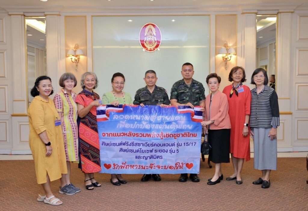 - ศิษย์เก่าเซนต์ฟรังซิสซาเวียร์คอนแวนต์ รุ่นที่ 15/17 และศิษย์เก่าเซนต์โยเซฟระยอง นำโดย ดร.วิชชุดา สง่าเนตร และคณะ มอบลวดหนามหีบเพลง จำนวน 51 ขด มูลค่า 102,980 บาท