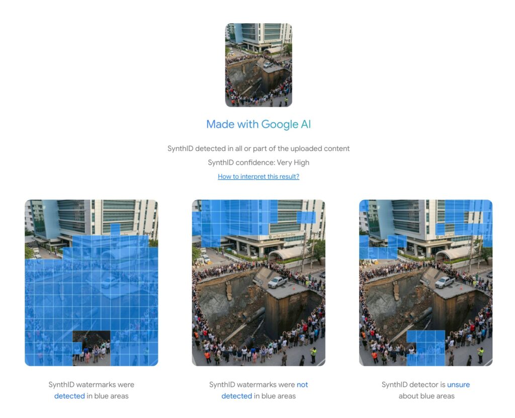 จากกรณีที่มีการแชร์ภาพกลุ่มประชาชนยืนมุงดูเหตุการณ์ถนนทรุดบริเวณหน้าโรงพยาบาลวชิรพยาบาลในโลกออนไลน์นั้น ล่าสุดสมาคมผู้ผลิตข่าวออนไลน์ได้ตรวจสอบความถูกต้องของภาพดังกล่าว พบว่าภาพดังกล่าวไม่ใช่ภาพจริง แต่เป็นภาพที่สร้างขึ้นด้วยเทคโนโลยีปัญญาประดิษฐ์ (AI)การตรวจสอบด้วยโปรแกรม SynthID Detector พบว่าภาพมี ลายน้ำดิจิทัล ปรากฏอยู่ประมาณ 3/4 ของภาพ ซึ่งเป็นสัญลักษณ์ยืนยันว่าเป็นภาพที่สร้างขึ้นจาก AI