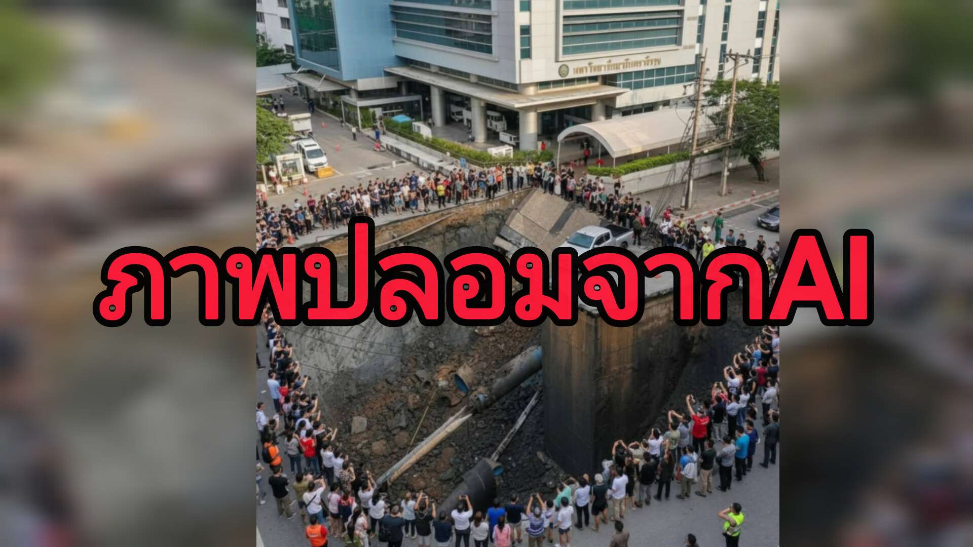 เตือน! ภาพไทยมุงถนนทรุดหน้า​รพ.วชิระฯ ที่แชร์กันเป็นภาพปลอมจาก AI
