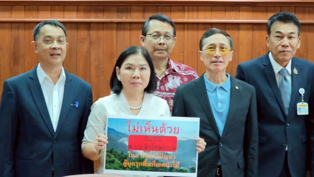 ทั้งนี้ ที่ประชุมมีข้อเสนอให้ถอนร่าง พ.ร.บ.นิรโทษกรรม ทั้ง 2 ฉบับออกจากการพิจารณาวาระ 2 เพราะมีเนื้อหาขัดรัฐธรรมนูญด้านจริยธรรม และผลประโยชน์ของรัฐ นอกจากนี้ สส. 42 คน อาจมีความผิด เพราะเข้าข่ายความผิดโฆษณา ชวนเชื่อว่ารุกป่าได้โดยไม่มีความผิด ซึ่งสามารถร้องเรียนต่อ ป.ป.ช.และอาจถึงขั้นยุบพรรคได้ พร้อมเรียกร้องให้อาจารย์คณะวนศาสตร์ นักวิชาการป่าไม้ สัตว์ป่า และหน่วยงานที่เกี่ยวข้องทั้งหมดออกมาคัดค้านร่าง พ.ร.บ.นิรโทษกรรม ทั้ง 2 ฉบับทันที ก่อนจะเสียที่ดินไปอยู่กับนายทุนและถูกบุกรุกเพิ่มอย่างไม่สิ้นสุด