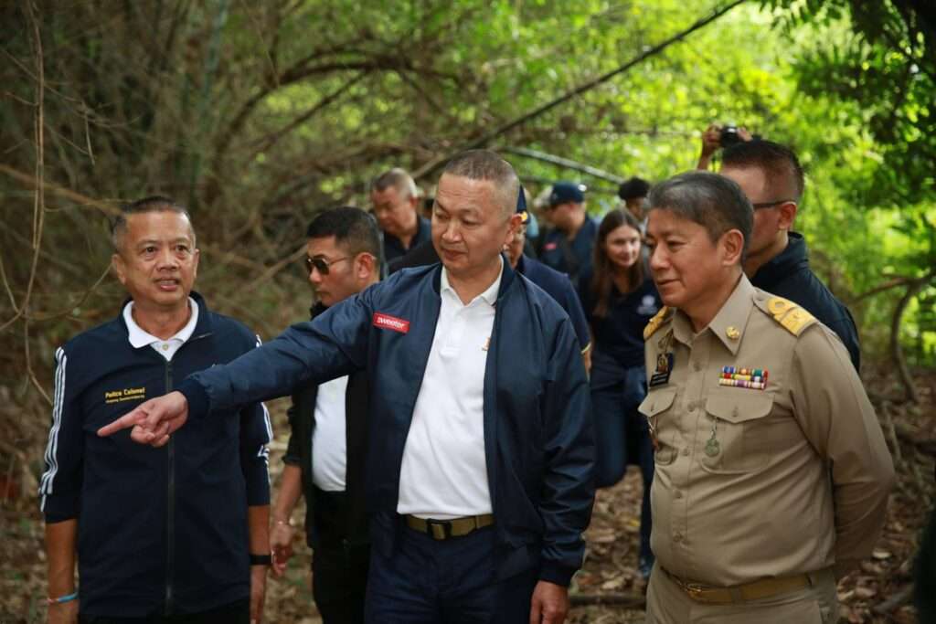 จากนั้น พล.ต.อ.ธัชชัยฯ ได้นำคณะลงพื้นที่ชายแดนไทย–กัมพูชา บริเวณช่องทางธรรมชาติใกล้เมืองไพลิน ประเทศกัมพูชา เพื่อตรวจสอบมาตรการป้องกันการลักลอบข้ามแดน และรับฟังรายงานจุดที่กลุ่มแก๊งคอลเซ็นเตอร์ใช้เป็นฐานปฏิบัติการ โดยพบว่ามีอาคารสูง รั้วรอบขอบชิดในฝั่งกัมพูชา ซึ่งมีชาวต่างชาติเข้าเช่าและใช้ประโยชน์เชื่อมโยงกับการกระทำผิด ทั้งนี้ฝ่ายไทยได้เข้มงวดในการตัดการลักลอบเชื่อมต่อสาธารณูปโภคจากฝั่งไทยไปยังพื้นที่ดังกล่าว ตามมาตรการ “ระเบิดสะพานโจร” หรือการตัดสาธารณูปโภคที่อาจเอื้อประโยชน์แก่กลุ่มอาชญากรรม