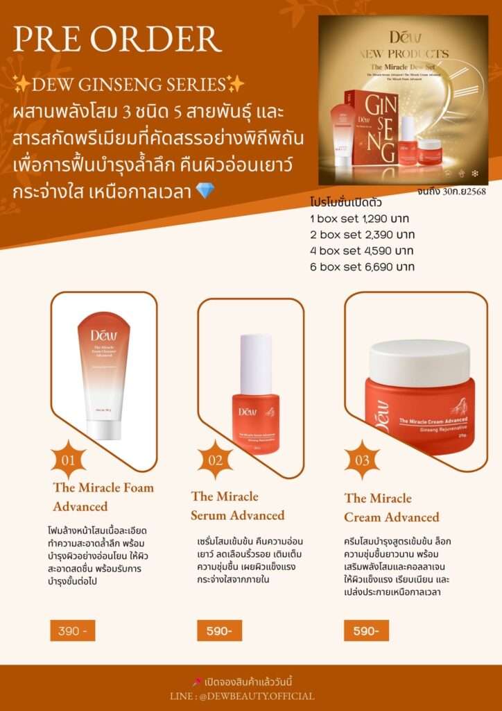 DEW เปิดตัวอย่างยิ่งใหญ่กับ DEW Ginseng Series ผลิตภัณฑ์ดูแลผิวที่รังสรรค์ขึ้นจากการผสมผสานพลังโสม 3 ชนิด 5 สายพันธุ์หายาก คัดสรรคุณค่าจากธรรมชาติร่วมกับสารสกัดระดับพรีเมียม เพื่อการบำรุงล้ำลึกตรงจุด