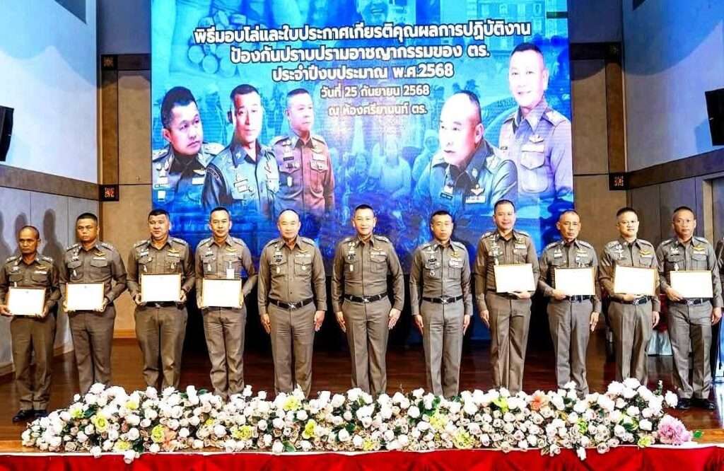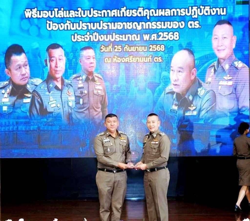 ผกก.สมชาย โค่นทุกคู่แข่ง คว้าโล่เชิดชูเกียรติและประกาศเกียรติคุณในฐานะ ผู้นำสถานีตำรวจระดับใหญ่ ที่มีผลการปฏิบัติงานดีเด่น ‘อันดับ 1 ของประเทศ’ มาครองอย่างยิ่งใหญ่! พิธีมอบรางวัลอันทรงเกียรตินี้ จัดขึ้นเมื่อวันที่ 25 กันยายน 2568 ณ ห้องศรียานนท์ สำนักงานตำรวจแห่งชาติ