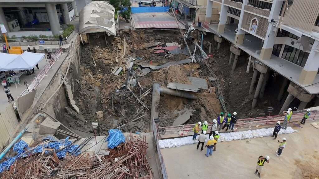 กรุงเทพมหานคร โดยสำนักงานเขตดุสิต สำนักป้องกันและบรรเทาสาธารณภัย สำนักการโยธา สำนักการระบายน้ำ ร่วมกับผู้รับจ้างโครงการฯ ของการรถไฟฟ้าขนส่งมวลชนแห่งประเทศไทย (รฟม.) เร่งดำเนินการป้องกันดินสไลด์เพิ่มเติม โดยการเทคอนกรีตเพื่ออุดปากหลุมทางเข้าสถานีรถไฟฟ้า และหาแนวทางป้องกันน้ำฝนไม่ให้ไหลเข้าสู่หลุมที่ทรุดตัว โดยติดตั้งเครื่องสูบน้ำแรงส่งสูง จัดเรียงกระสอบทรายปิดกั้นท่อระบายน้ำในจุดสำคัญใกล้เคียง เพื่อความปลอดภัยทั้งผู้ปฏิบัติงานและประชาชน ก่อนที่จะเร่งดำเนินการแก้ไขฟื้นฟูและคืนผิวจราจรให้กลับมาใช้งานได้ปกติโดยเร็วที่สุดต่อไป
