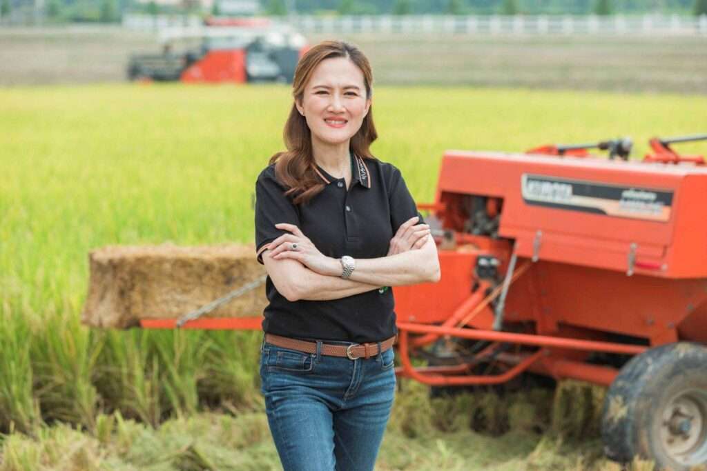 “เพื่อขับเคลื่อนการบริหารจัดการตามหลัก K-ESG ที่คำนึงถึงสิ่งแวดล้อม สังคม และธรรมาภิบาลอย่างเป็นรูปธรรม สยามคูโบต้าจึงได้ตั้งเป้าหมายสู่การปลูกข้าวโลว์คาร์บอนครบวงจรภายใต้โครงการ Low Carbon Agriculture Farmily โดยมุ่งสร้าง Ecosystem การปลูกข้าวแบบยั่งยืน เริ่มจากชุมชนต้นแบบของเราเอง ซึ่งเน้นการส่งเสริมการปลูกข้าวแบบลดคาร์บอนตลอดกระบวนการ ตั้งแต่การเตรียมดิน ที่มุ่งส่งเสริมการใช้ “ไบโอชาร์” ในปริมาณที่เหมาะสมกับสภาพดิน เพื่อช่วยกักเก็บคาร์บอนในดิน การเพาะปลูก ด้วยการรณรงค์ทำ “นาเปียกสลับแห้ง” เพื่อลดการขังน้ำซึ่งเป็นสาเหตุหลักของการปล่อยก๊าซมีเทน การจัดการฟาง มุ่งเน้นให้เกษตรกรทำการ “อัดฟางข้าว”เพื่อนำไปผลิตเป็นไบโอชาร์สำหรับใช้ในขั้นตอนเตรียมดินต่อไป จนเกิดเป็นการสร้างวงจรหมุนเวียนให้เกิดขึ้นในระบบ Farmily เพื่อนำไปสู่การพัฒนาภาคเกษตรกรรมมุ่งสู่เป้าหมายNET ZERO 2050 อย่างยั่งยืน อีกทั้งยังเป็นต้นแบบให้แก่เกษตรกรในพื้นที่และจังหวัดใกล้เคียงได้ศึกษาและนำไปประยุกต์ใช้ได้ต่อไปในอนาคต” นางวราภรณ์ กล่าวทิ้งท้าย