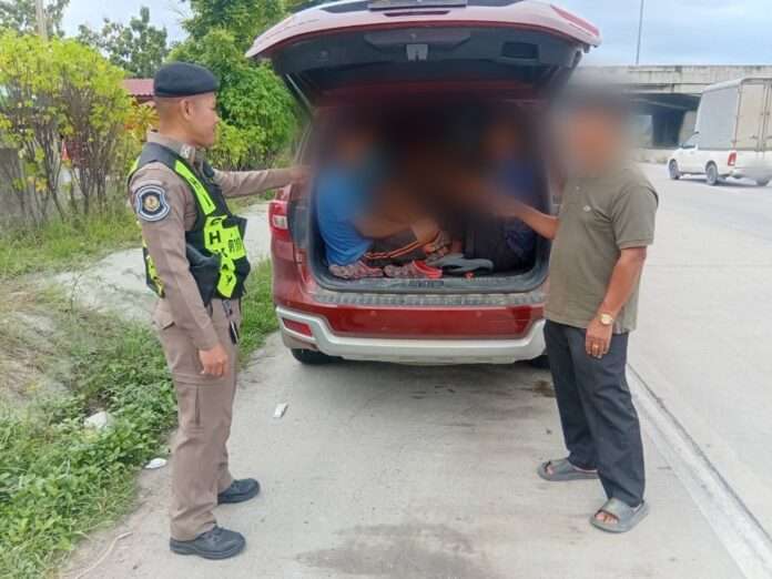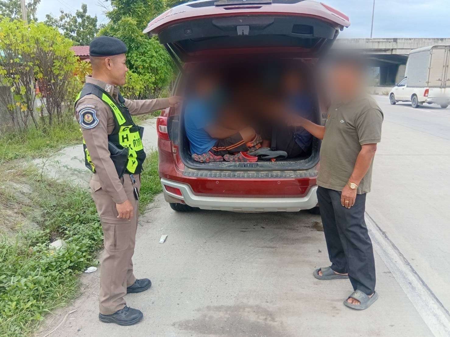 กองบัญชาการตำรวจสอบสวนกลาง (CIB) สนธิกำลังตำรวจทางหลวง สกัดจับแรงงานต่างด้าวเมียนมาร์ 12 คน อัดแน่นท้ายรถฟอร์ด บนถนนกาญจนาภิเษก ปทุมธานี พบเข้าประเทศผิดกฎหมายผ่านช่องทางธรรมชาติ ด้านคนขับวัย 62 ปี รับสารภาพพาไปทำงานสวนที่กาญจนบุรี