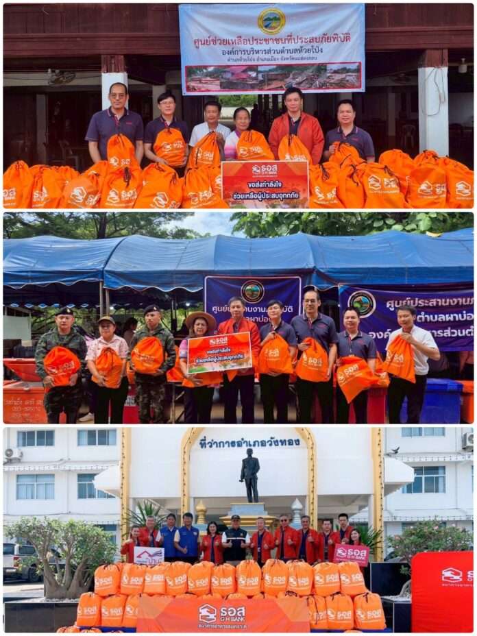 ที่เกิดขึ้นในพื้นที่ภาคเหนือขณะนี้ ส่งผลให้หลายจังหวัดภาคเหนือเกิดฝนตกหนัก น้ำท่วมฉับพลัน และดินโคลนถล่มสร้างความเสียหายแก่บ้านเรือนและทรัพย์สินของประชาชนเป็นจำนวนมากธอส. ในฐานะสถาบันการเงินของรัฐจึงได้ส่งทีมลงพื้นที่เป็นการเร่งด่วนเพื่อมอบถุงยังชีพจำนวน 1,100 ชุด ช่วยบรรเทาความเดือดร้อนให้แก่ผู้ประสบภัยครอบคลุมพื้นที่จังหวัดสุโขทัย เชียงใหม่ แม่ฮ่องสอน อุตรดิตถ์ เพชรบูรณ์ และพิษณุโลก พร้อมกันนี้ ธอส. ยังเดินหน้า